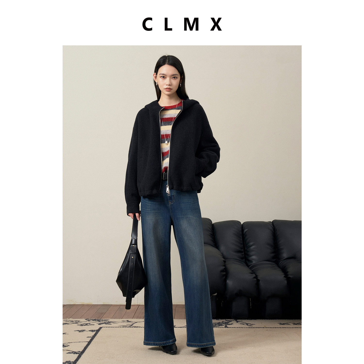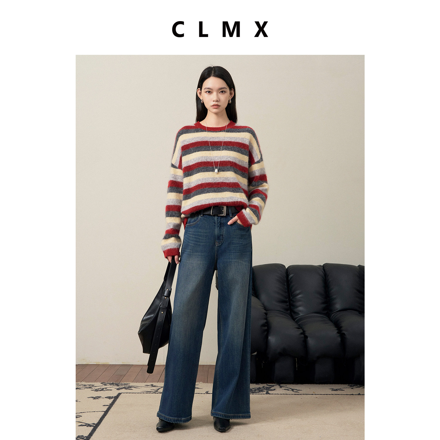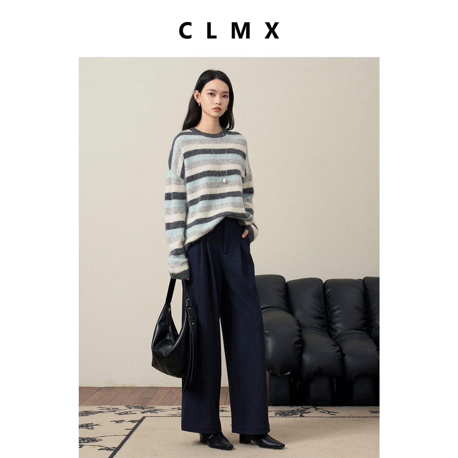 CLMX质感羊驼毛羊毛混纺纱线圆领落肩宽松氛围感四色条纹廓形毛衣