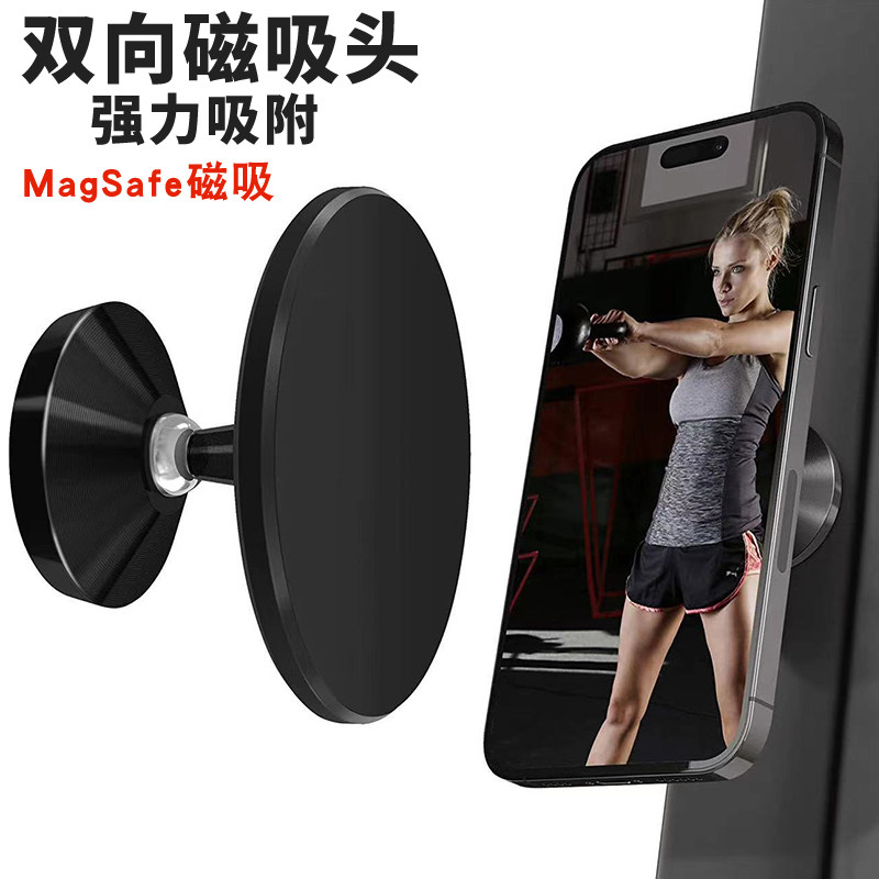 MagSafe双头磁吸手机支架金属多功能健身房自拍直播固定15pro两面磁力墙贴14promax双向磁铁吸附车载通用为华