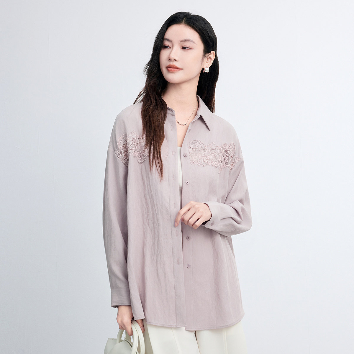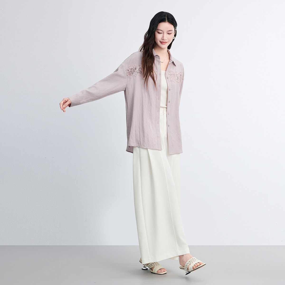 FINITY菲妮迪衬衫2026春新款镂空花边绣花中长款亚麻衬衣上衣女装