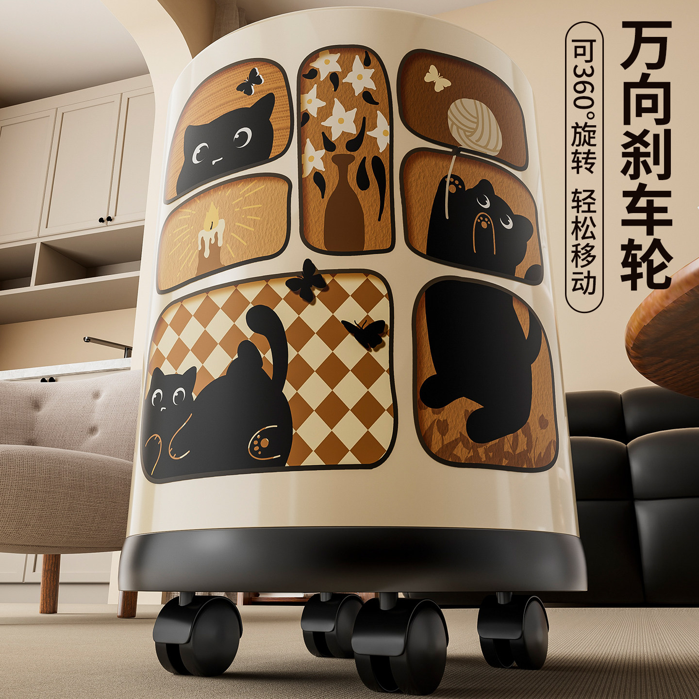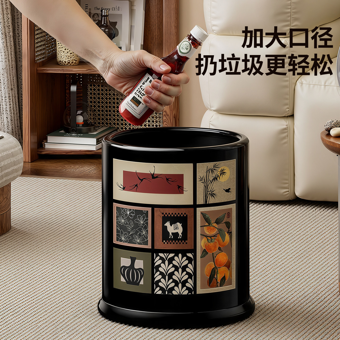 中古风垃圾桶家用2025新款客厅轻奢高颜值卧室大容量带轮子卫生桶