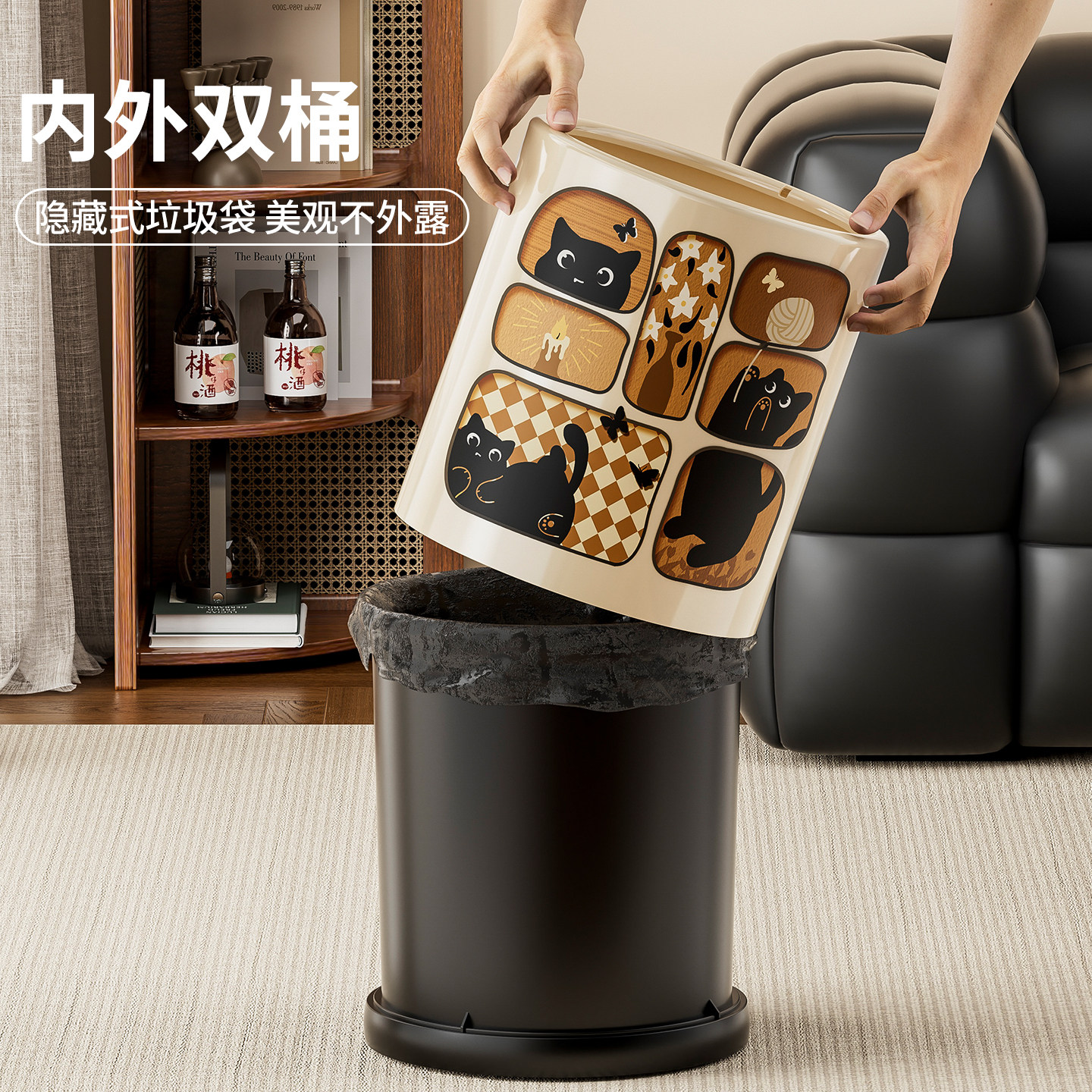 【谢霆锋推荐】佳帮手垃圾桶家用2025客厅轻奢大容量带盖卧室厨房