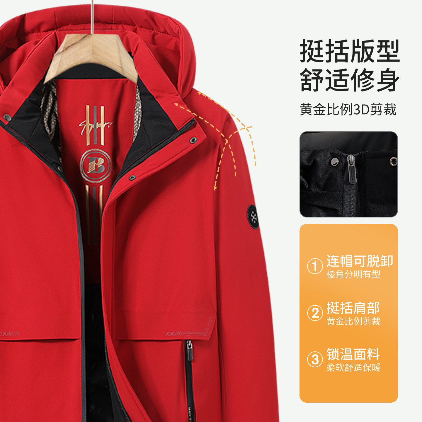 红蜻蜓男士可拆连帽棉服2025冬季新款休闲保暖中年爸爸装棉衣外套