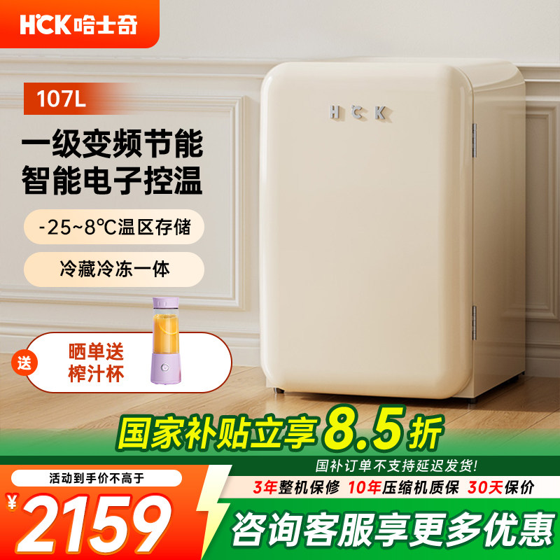 HCK哈士奇复古小冰箱冷冻冷藏迷你小型彩色奶油风可爱小吐司107L