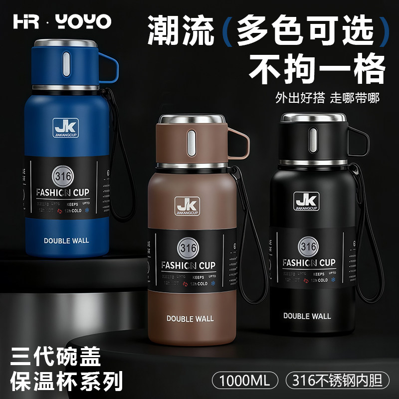 新款316不锈钢保温杯真空便携式男泡茶杯子大容量户外水壶1500ml