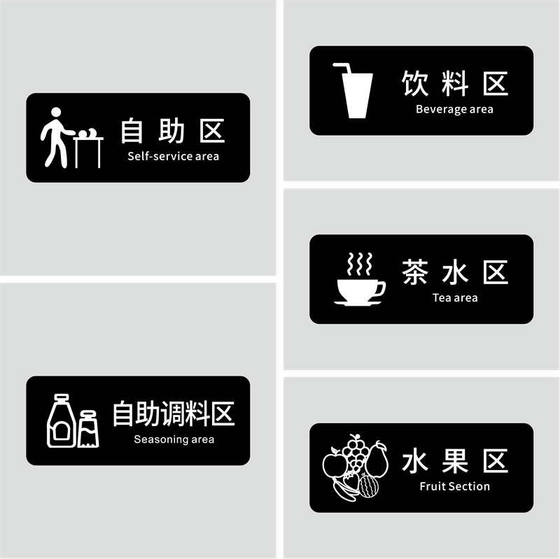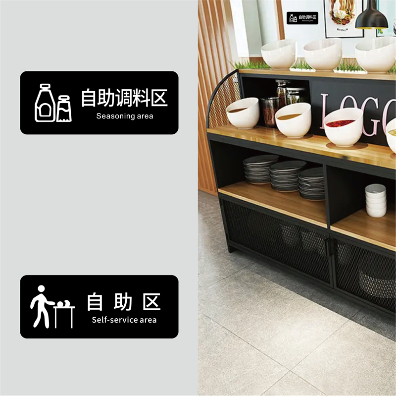 大号亚克力标志牌酒店自助餐厅火锅店自助调米饭区标识牌珍惜粮食杜绝浪费餐具已消毒提示牌冰淇淋区指引墙贴