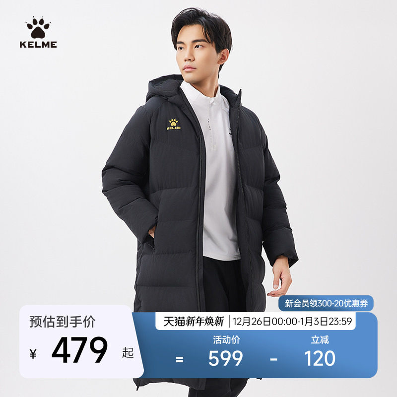 KELME卡尔美长款棉服男冬季新款中国出征系列足球训练运动棉衣