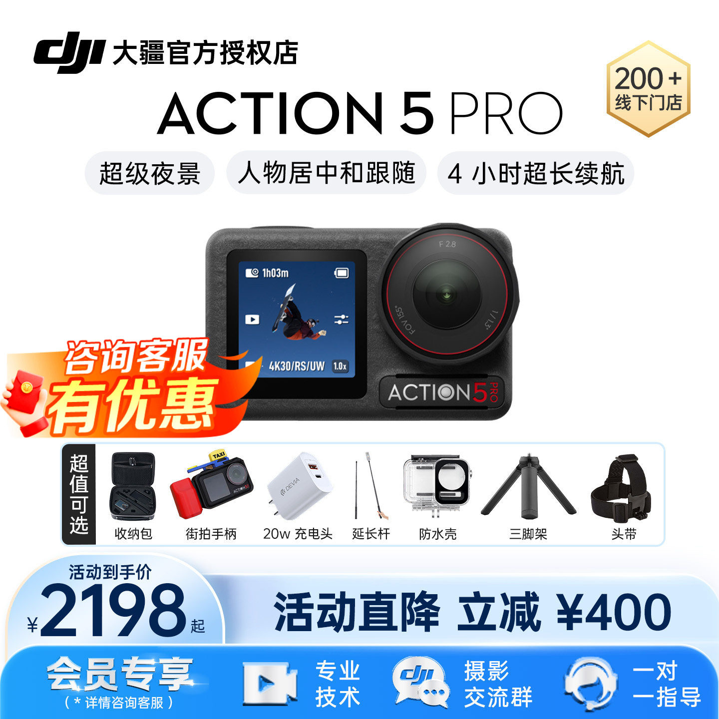【现货速发】DJI 大疆 Osmo Action 5 Pro 运动相机 Vlog骑行滑雪