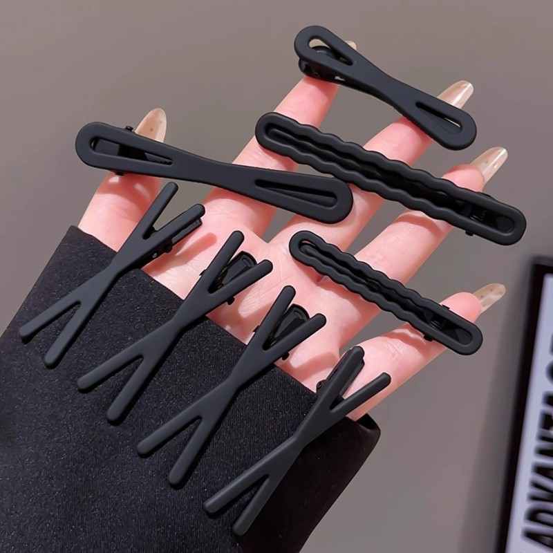 少女小金属刘海碎发一字鸭嘴造型侧边美妆发夹女发卡黑色夹子发饰
