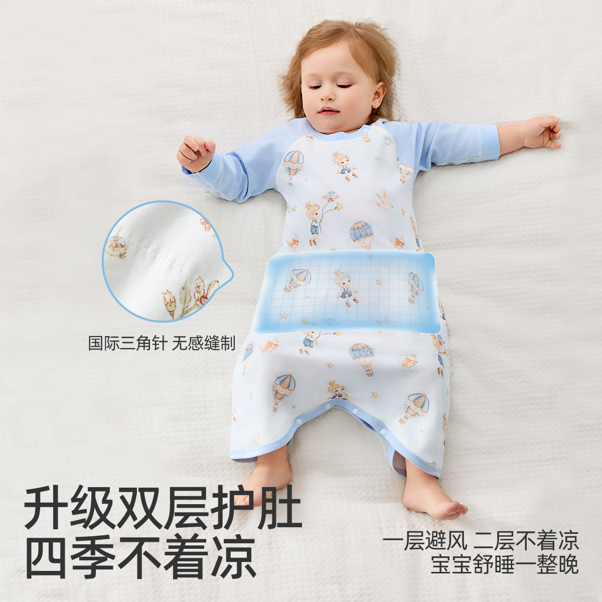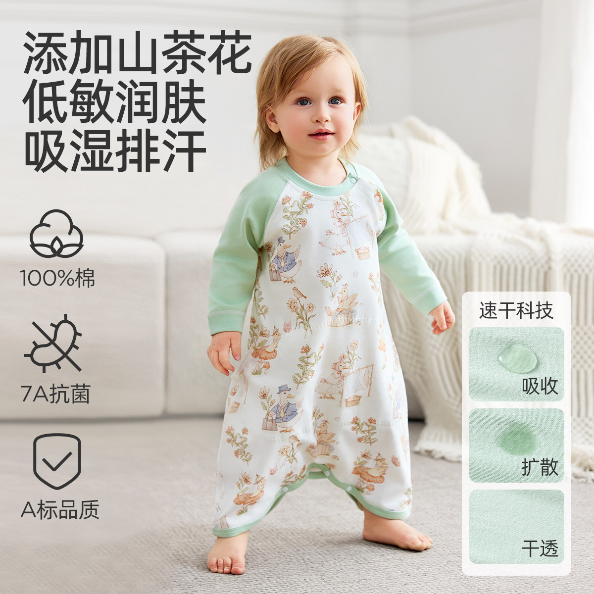 婧麒宝宝睡袍山茶花春夏纯棉男女婴儿睡袋儿童家居服睡裙2025新款