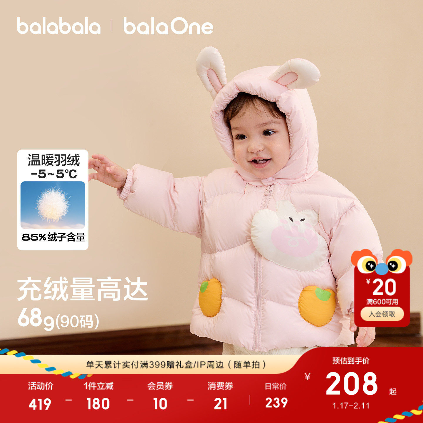 巴拉巴拉宝宝羽绒服冬装男童女童加厚保暖连帽外套萌2025新款上衣