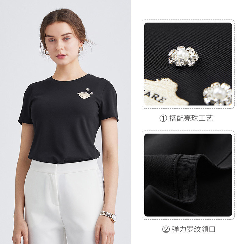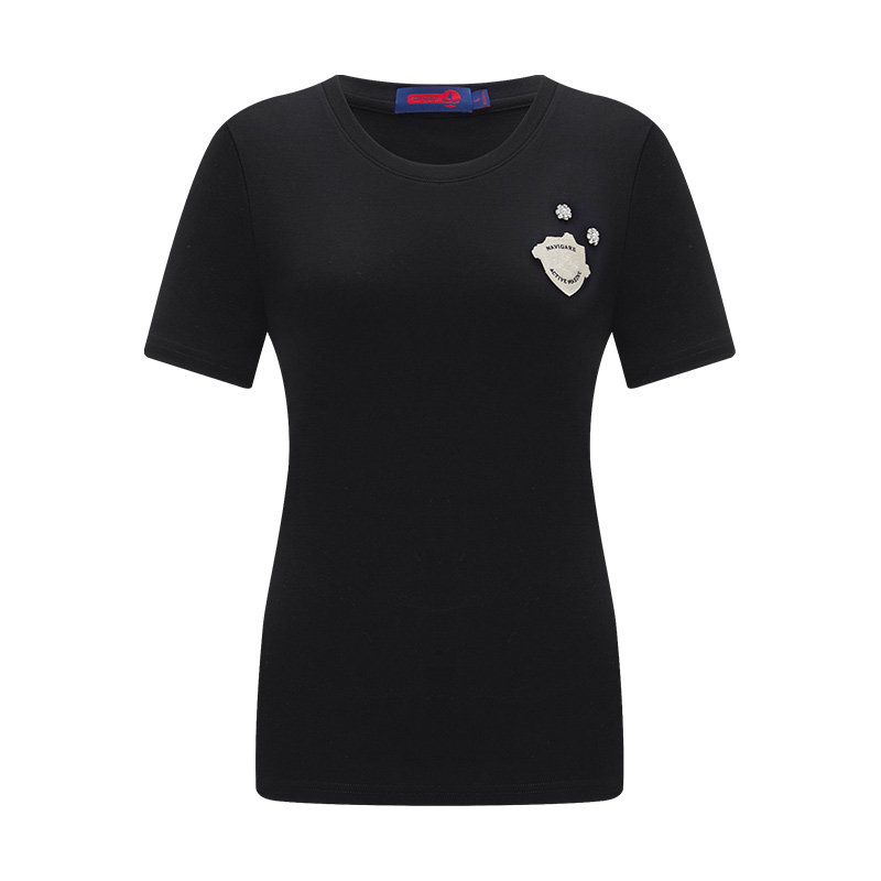 Navigare意大利小帆船黑色圆领短袖t恤女夏季修身上衣