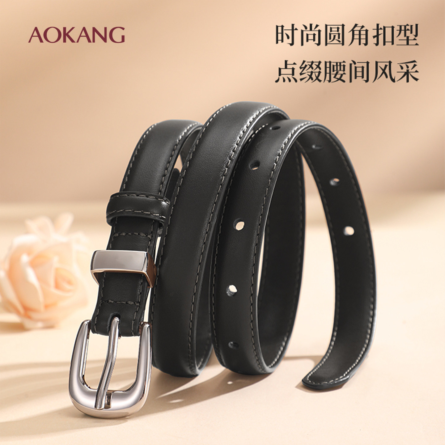 奥康腰带女士真皮黑色高级感头层牛皮裤带配牛仔裤皮带2025新款J