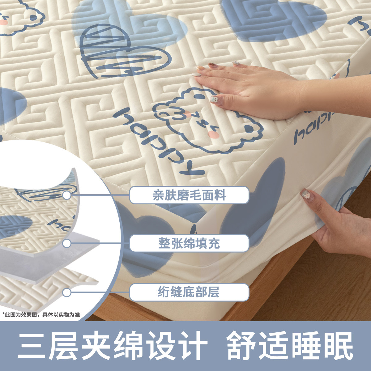 A类磨毛床笠加厚三层夹棉床垫保护套四季通用床褥罩床上三件套