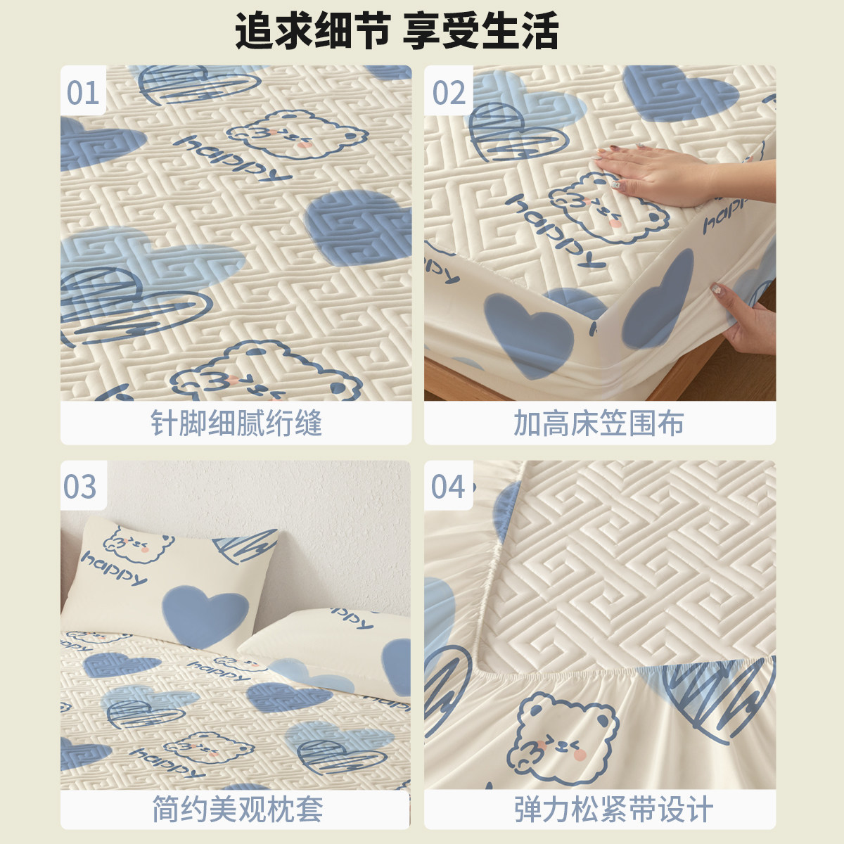 2025新款学生宿舍单人水洗棉夹棉床笠单件床垫保护罩套床单三件套
