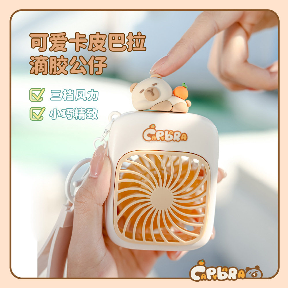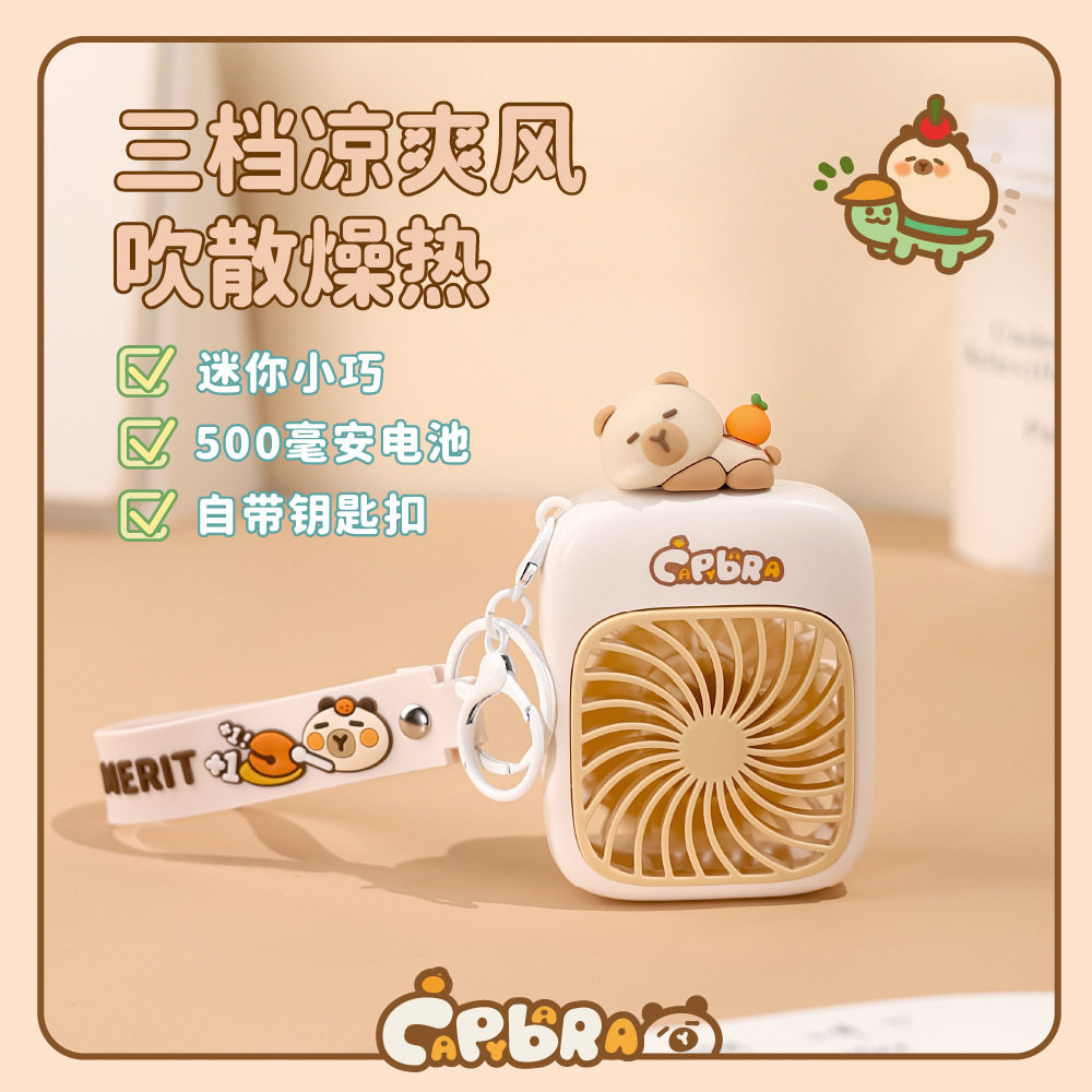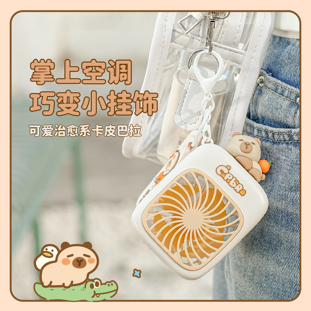 可爱卡皮巴拉钥匙扣小风扇usb出游便携学生迷你小型手持充电风扇