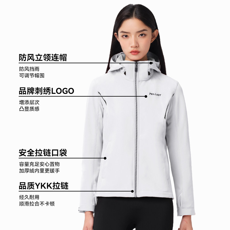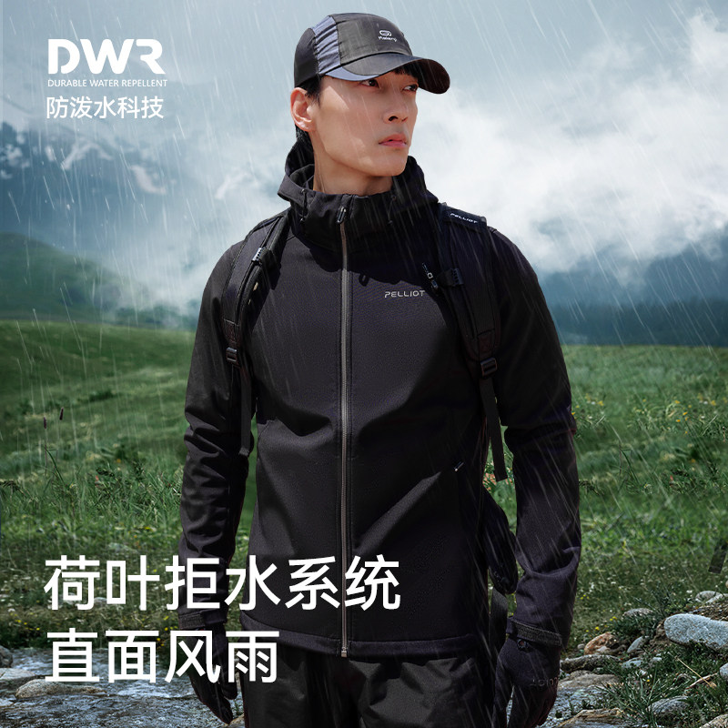 伯希和户外软壳衣男士防风保暖夹克休闲骑行服连帽外套冲锋衣内胆