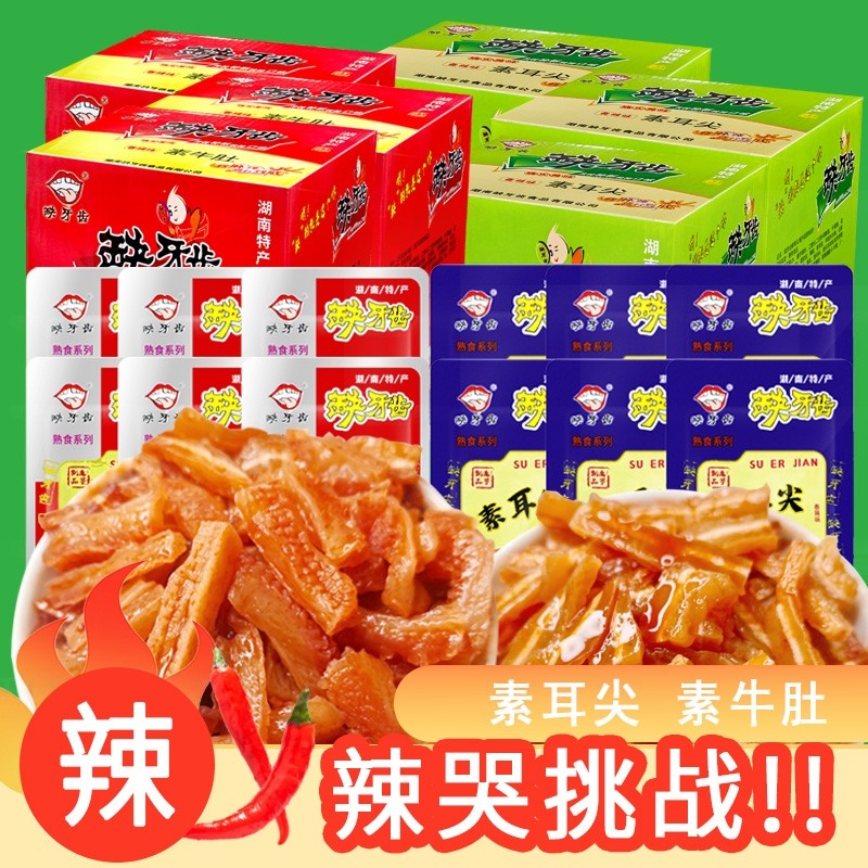 缺牙齿香辣素毛肚60包魔芋丝湖南特产微辣猛麻辣素牛肚素耳尖零食