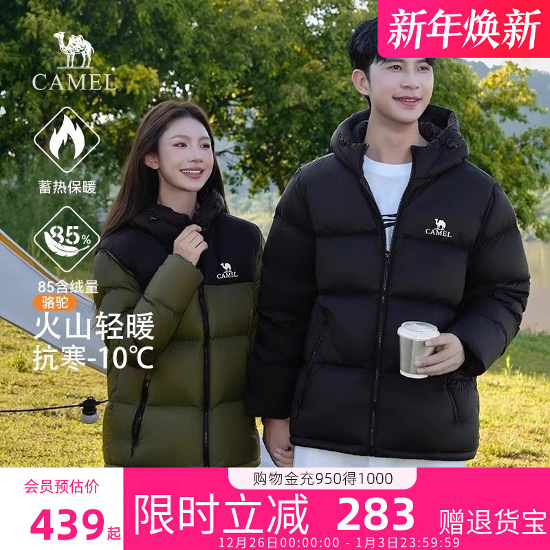 骆驼火山羽绒服面包服2025冬季连帽加厚保暖白鸭绒短款外套男女装