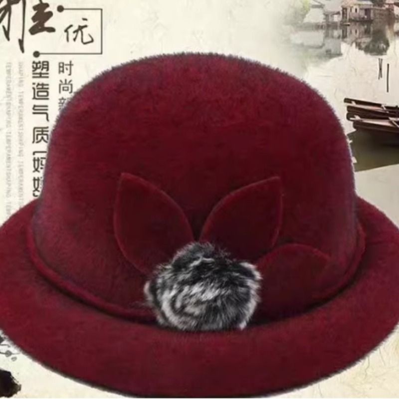 秋冬中老年帽子女帽冬季中年女士礼帽毛呢盆帽妈妈帽老年女帽盆帽