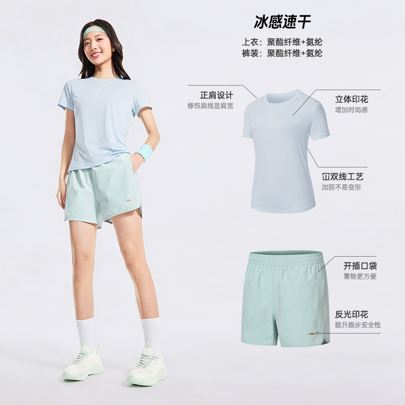 鸿星尔克运动套装女中考体育运动服羽毛球健身跑步速干衣短袖短裤