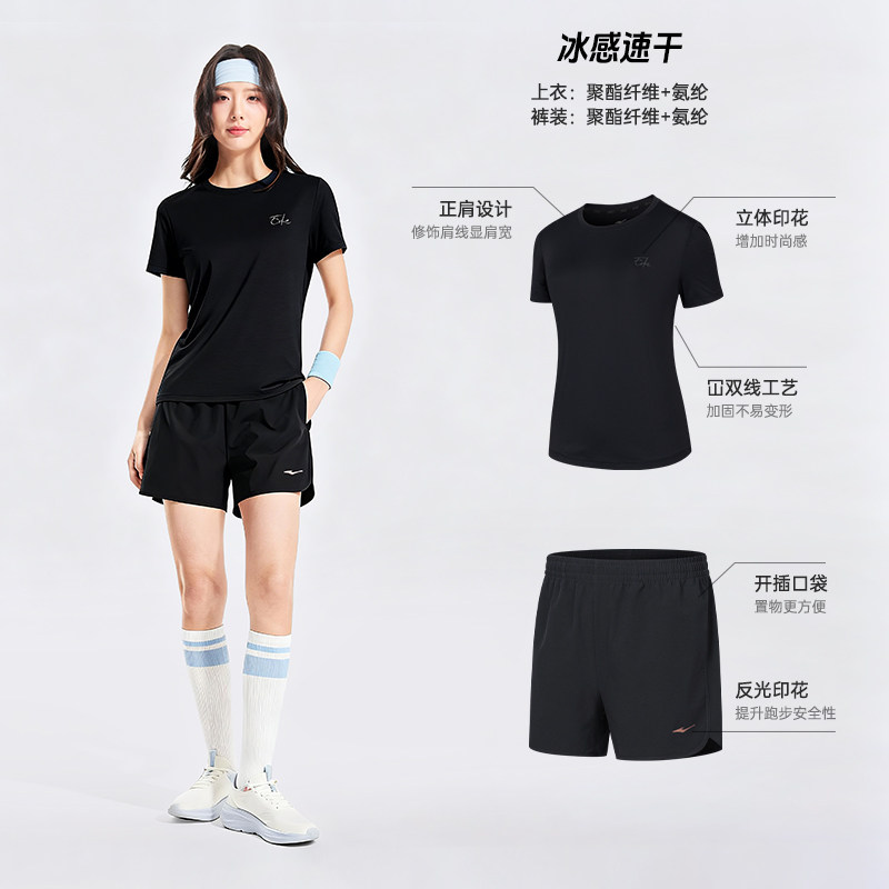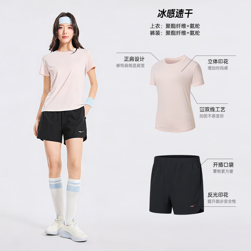 匹克速干套装丨跑步运动T恤短裤夏季女士透气健身瑜伽短袖两件套