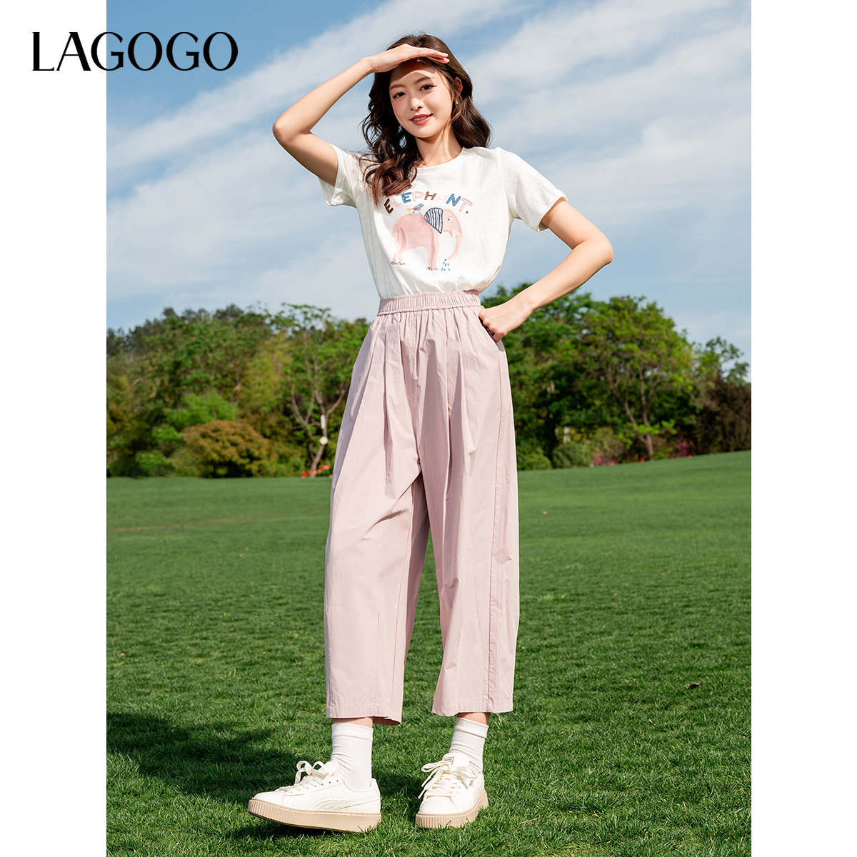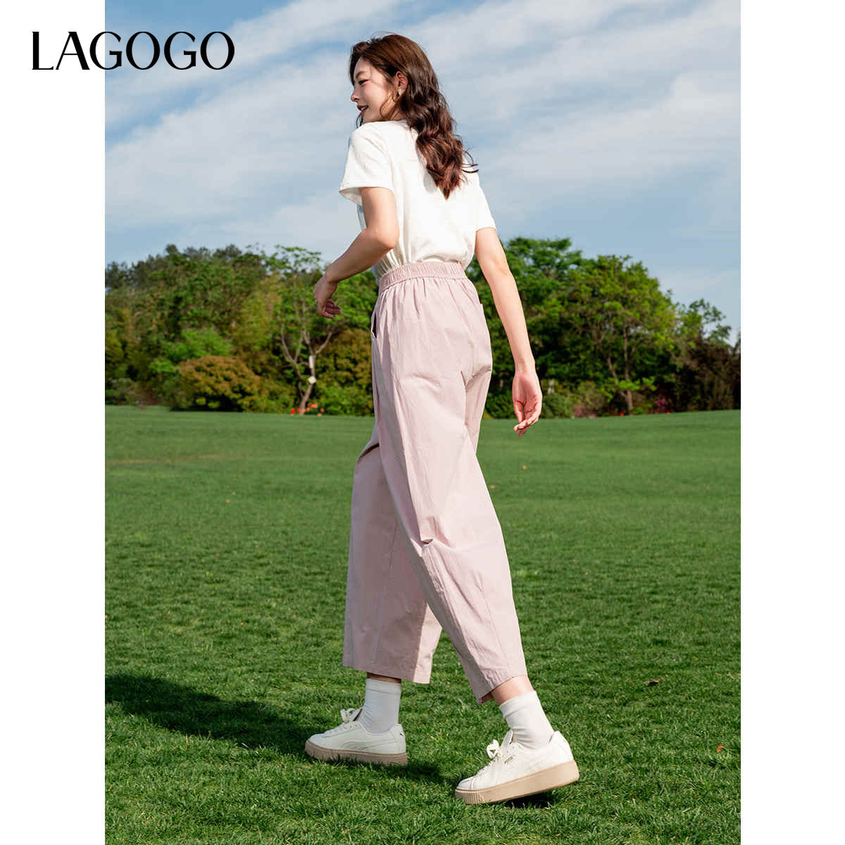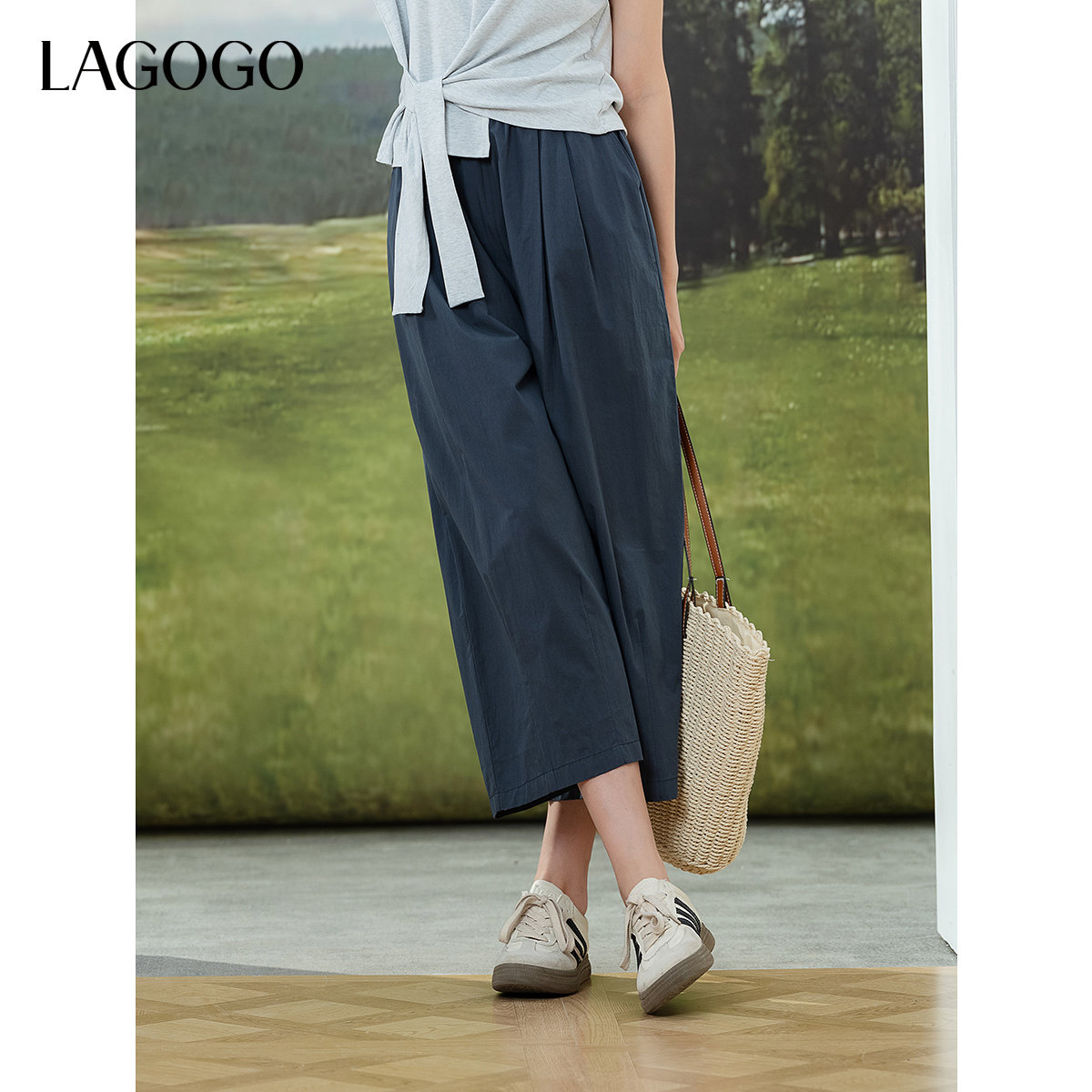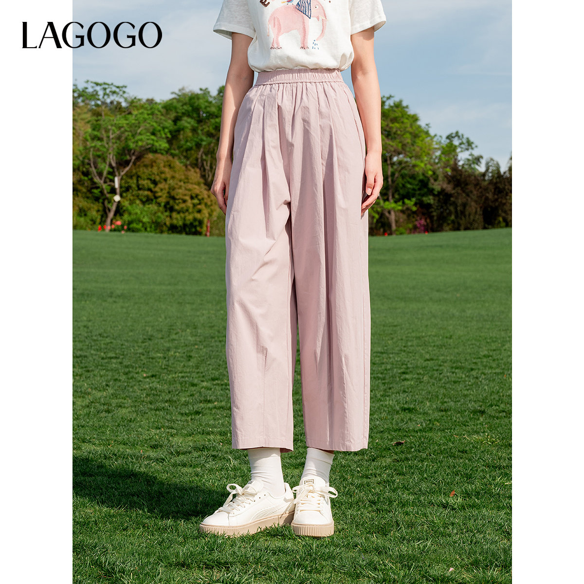 LAGOGO轻薄透气纯色全棉山本裤女拉谷谷夏季新款休闲显瘦阔腿裤子