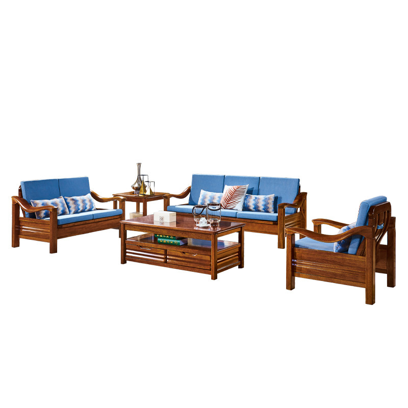 新中式实木沙发组合经济型沙发客厅小户型出租房冬夏两用木质沙发