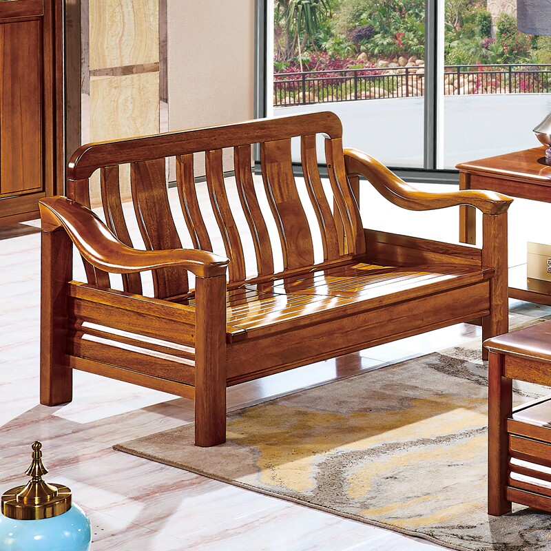 全实木沙发新中式组合客厅阳台单双人小户型出租房三人位沙发长椅