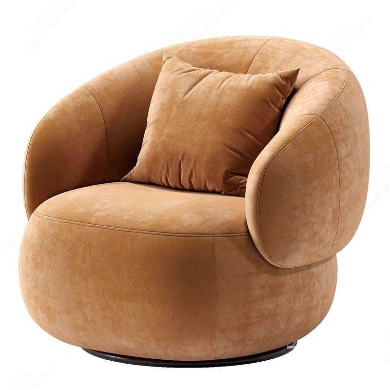 意式圆弧形橘色绿色单人布艺沙发小户型客厅直播间休闲卧室阳台椅