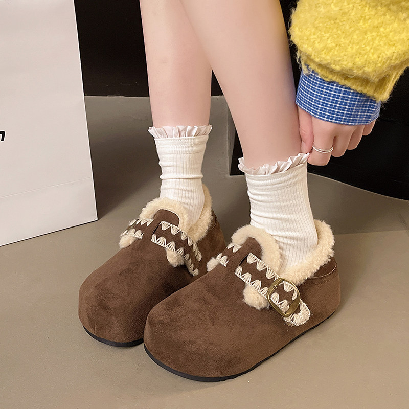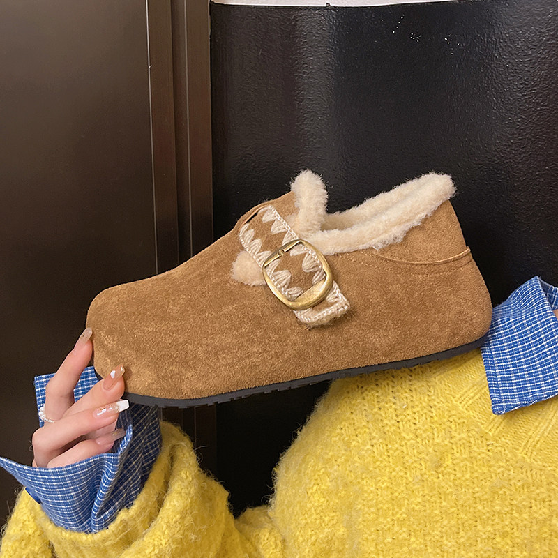 大码女鞋41到43勃肯鞋加绒厚底复古毛毛鞋2025新款冬保暖低帮棉鞋