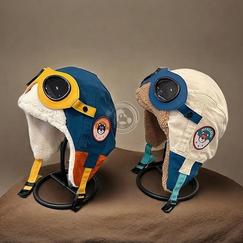 中大童可爱恐龙飞行员眼镜雷锋帽子女秋冬亲子男童加绒保暖护耳帽