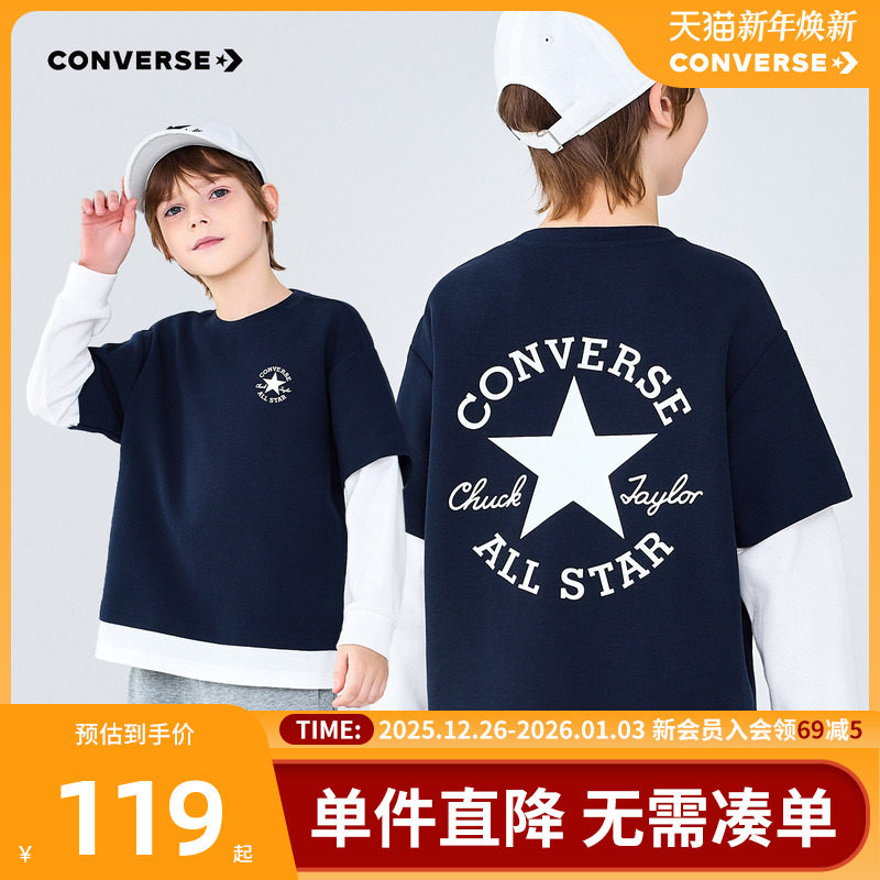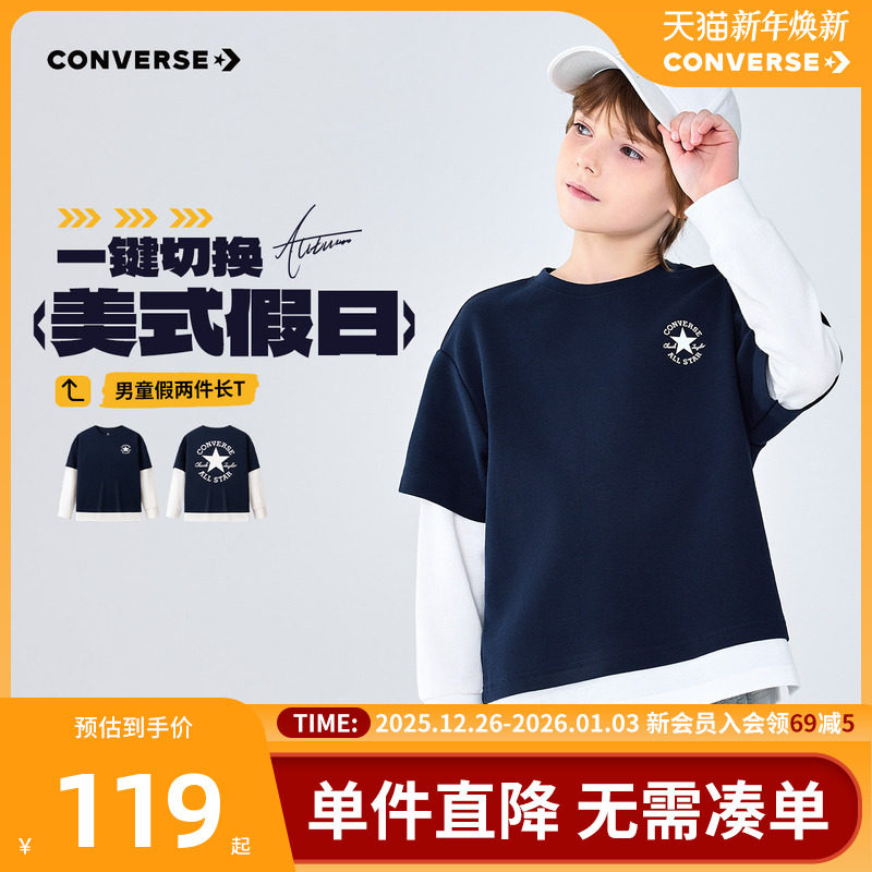 匡威儿童男童长袖T恤春装上衣纯棉打底衫潮流假两件休闲大童衣服
