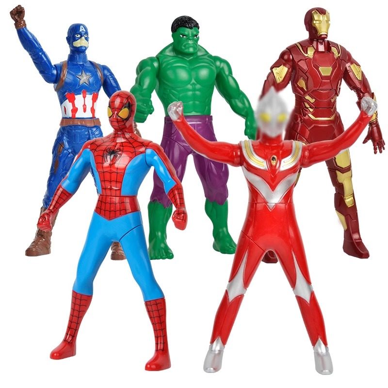 按压旋转迪迦超人玩具模型复仇者蜘蛛侠手办男孩子礼物品关节人偶