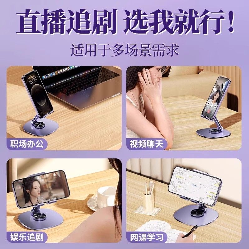 2024新款手机支架桌面懒人平板电脑支撑架可旋转折叠手机架直播视频ipad支撑架子航空金属720旋转便携手机架