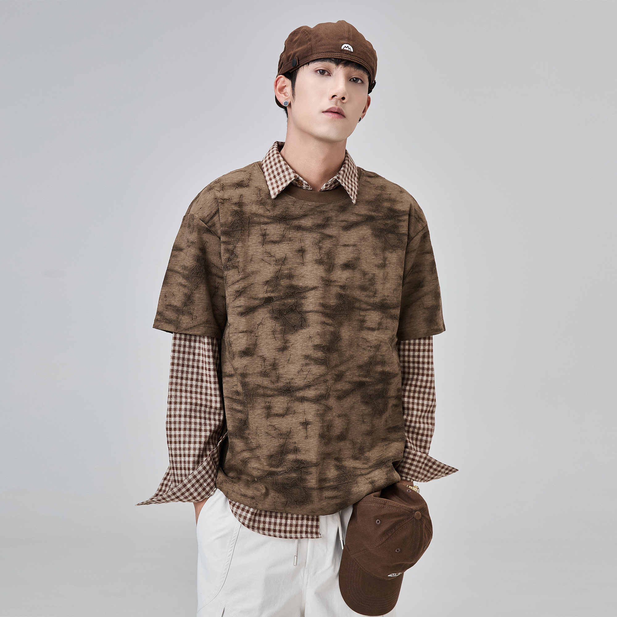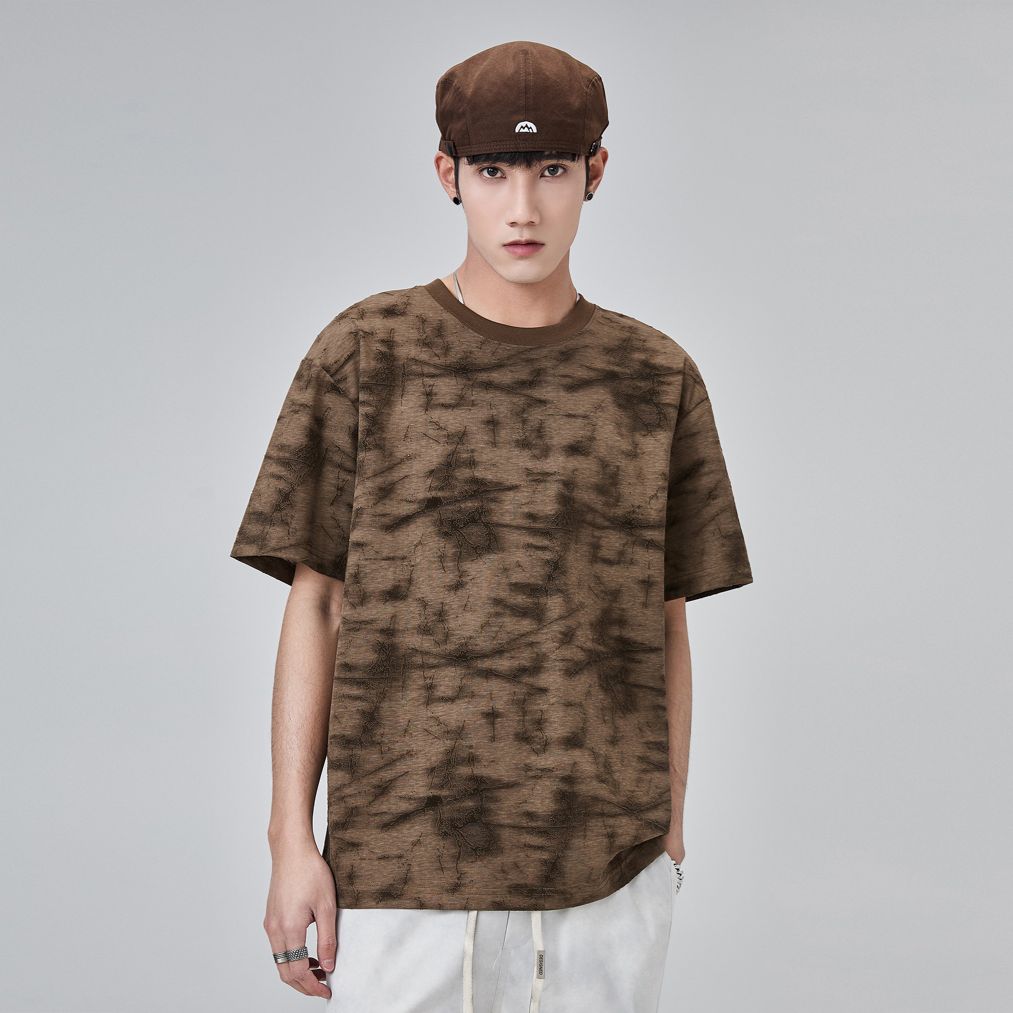ALLIN美式复古凉感肌理感短袖T恤男2025夏季新款扎染潮牌宽松上衣
