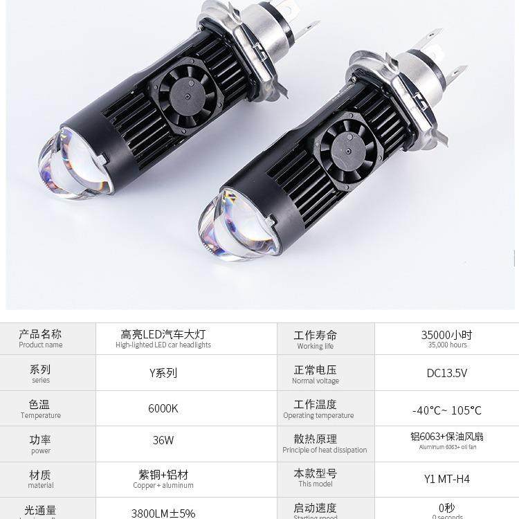 Y1 Y1MT-H4直插式矩阵款透镜大灯高亮白光远近光一体式汽车头灯
