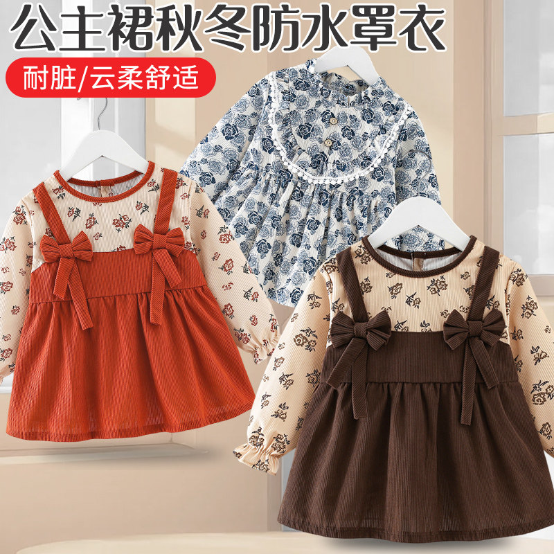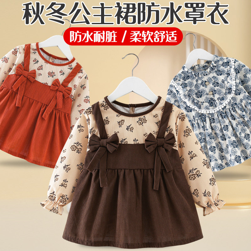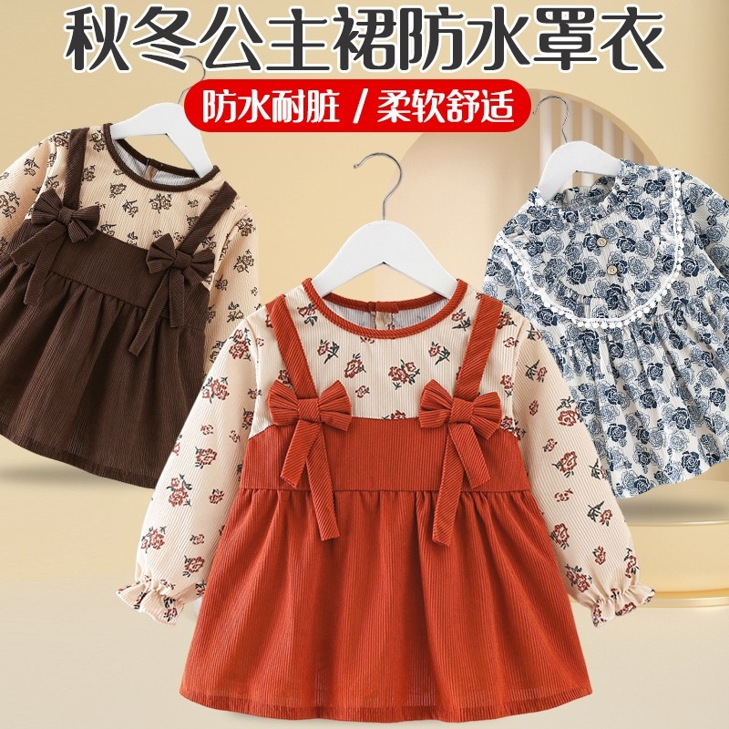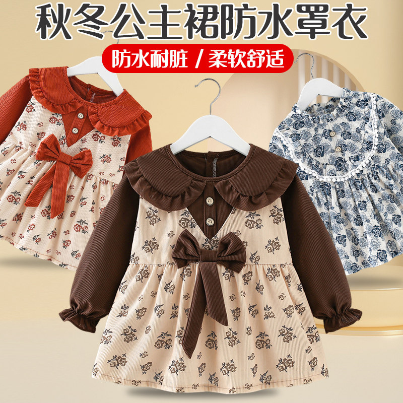 儿童罩衣宝宝围兜防水防脏吃饭外穿灯芯绒公主围裙子秋冬洋气女童