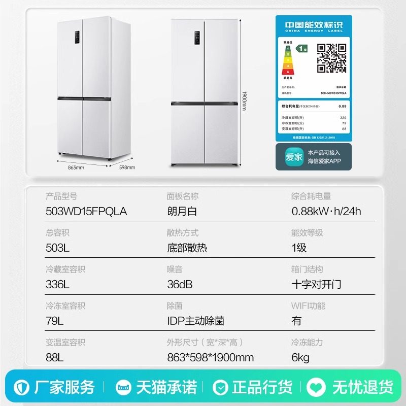 政府换新补贴海尔统帅469L十字对开四门一级风冷大容量家用电冰箱