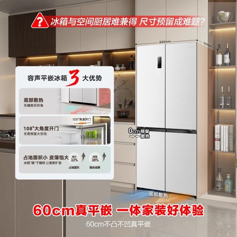 容声520L十字对开四门一级能效家用电冰箱超薄嵌入以旧换新补贴
