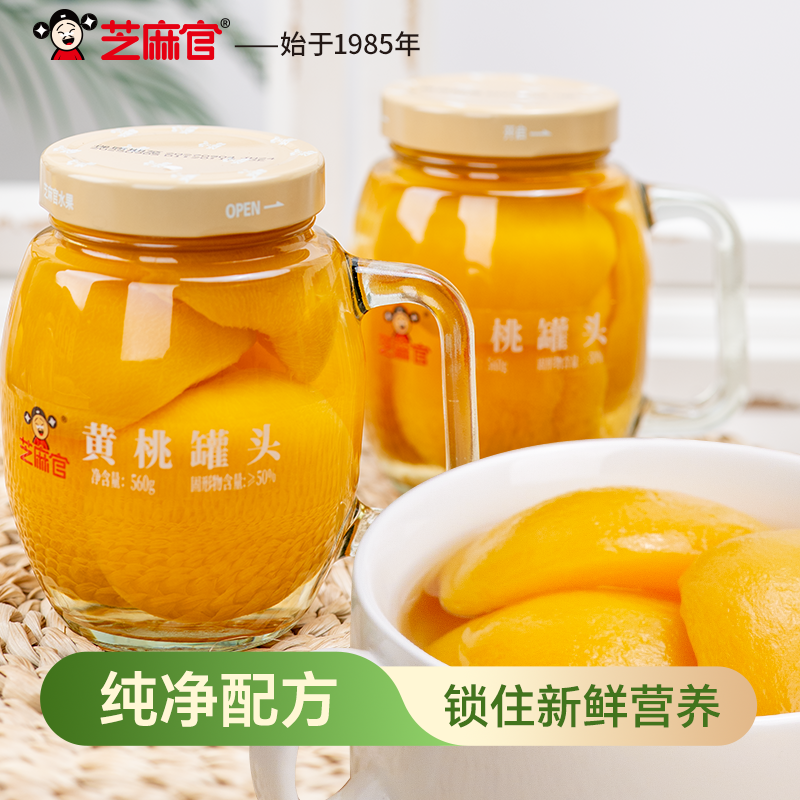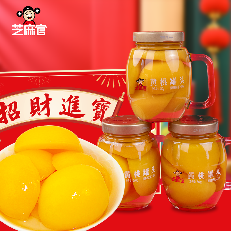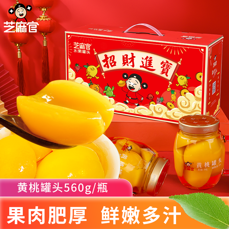 芝麻官黄桃罐头礼盒官方旗舰店正品整箱新鲜糖水黄桃560g*3罐