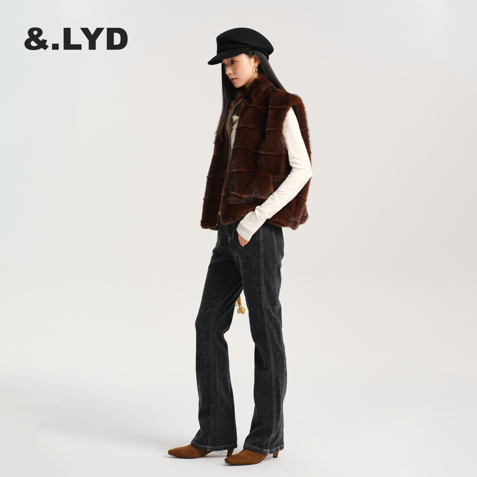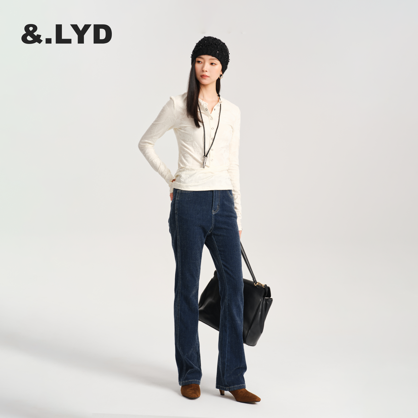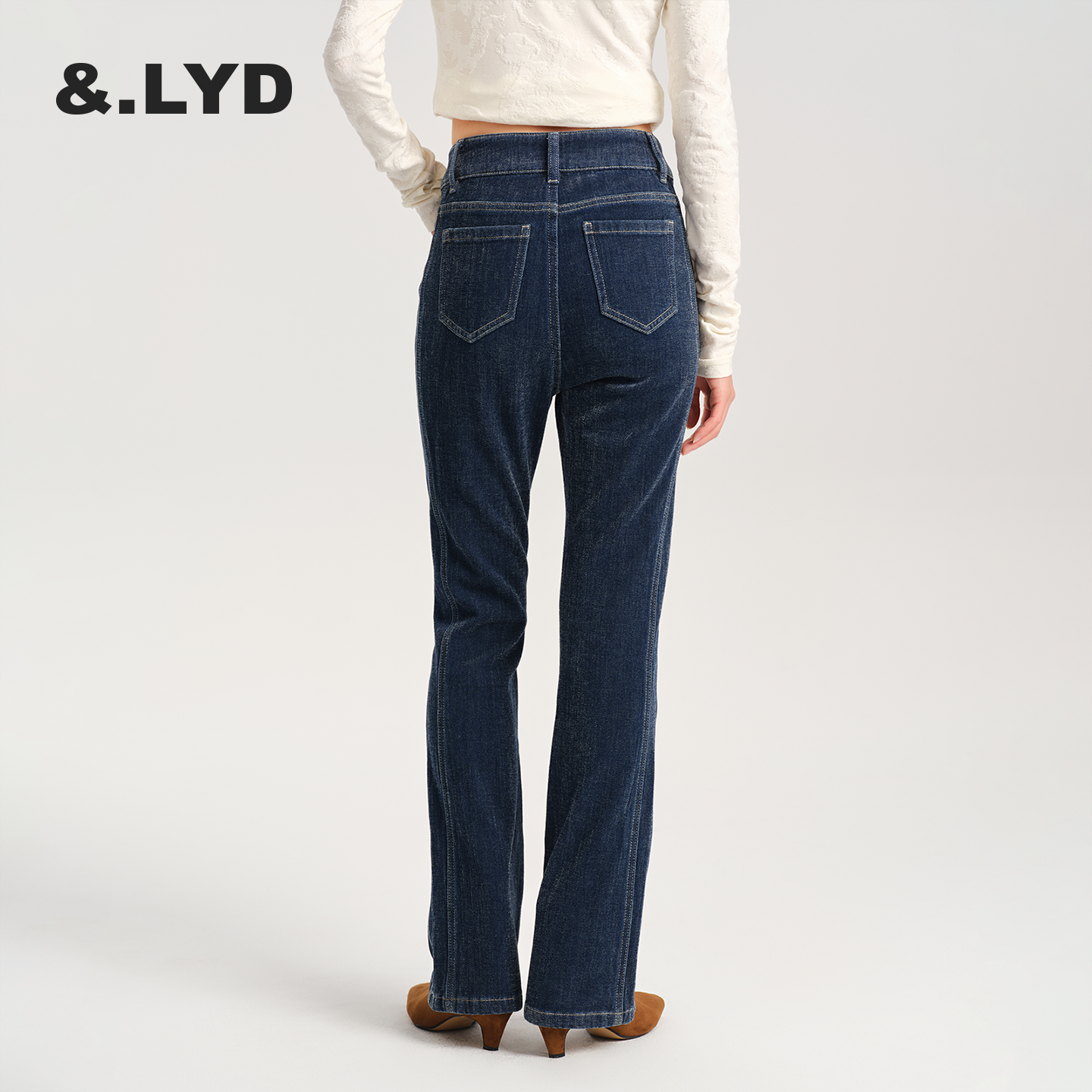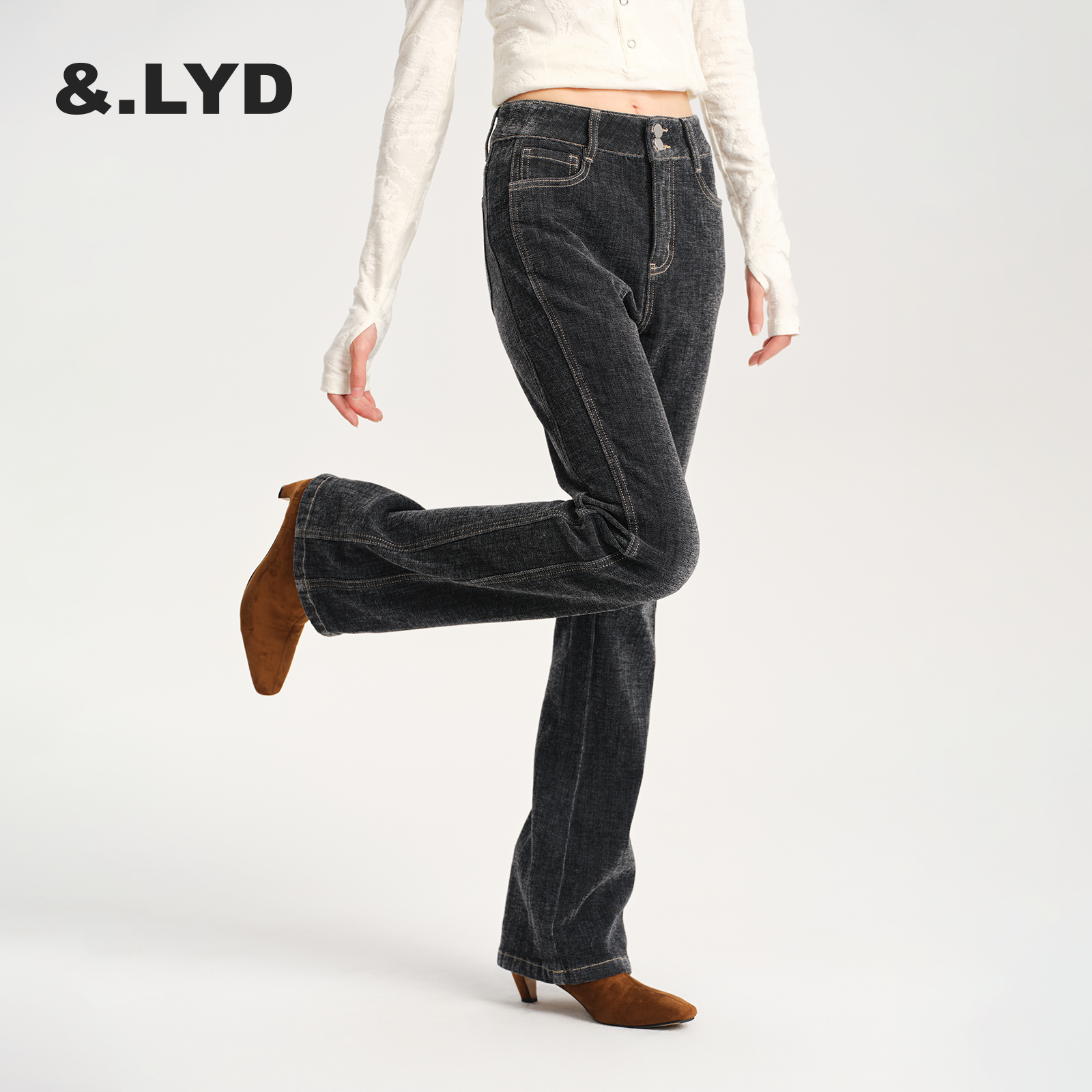 ANDLAYERED2025秋冬新款女士牛仔裤仙鹤裤高腰显瘦微喇裤时尚复古