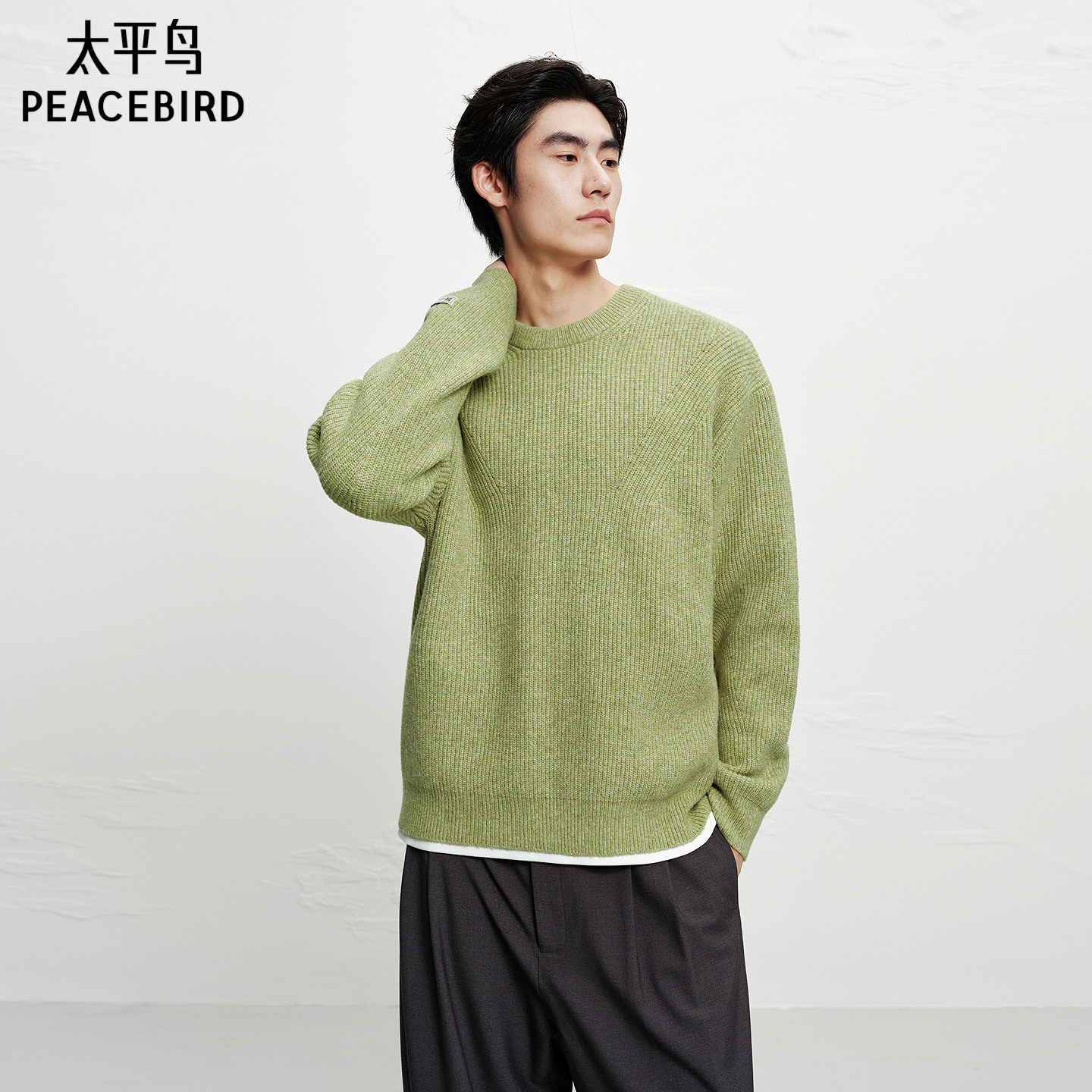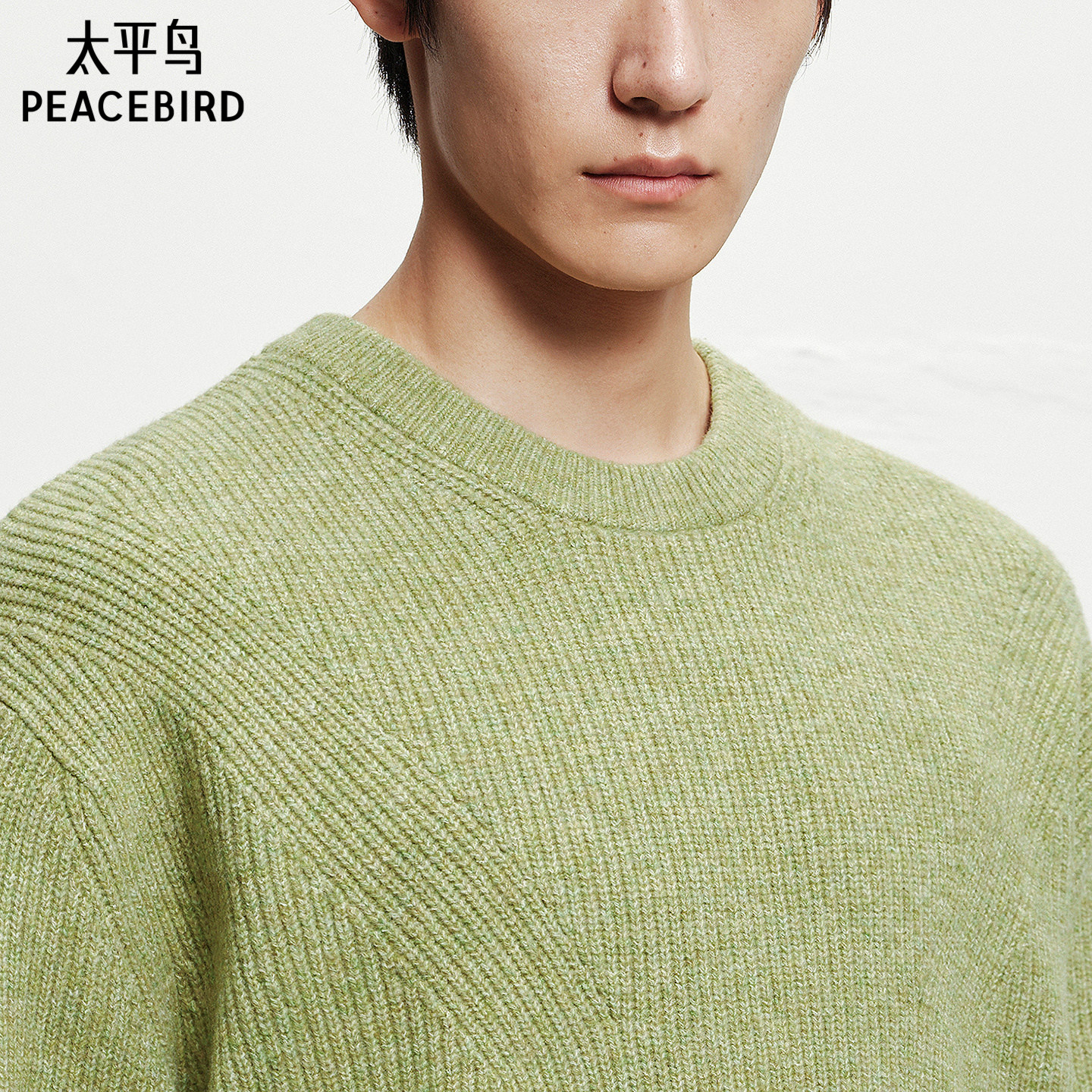 太平鸟男装 休闲毛衫2025冬季新款圆领纯色磨毛纱宽松休闲毛衣男