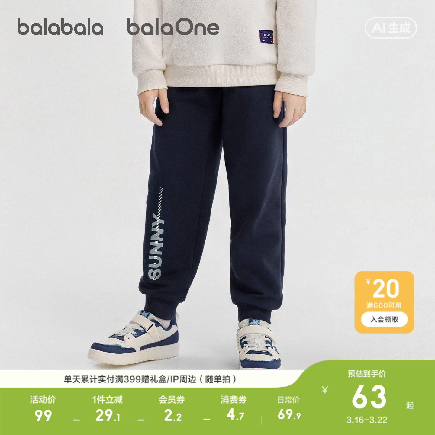 巴拉巴拉童装男童长裤儿童裤子2026春装女童中大童运动休闲裤百搭