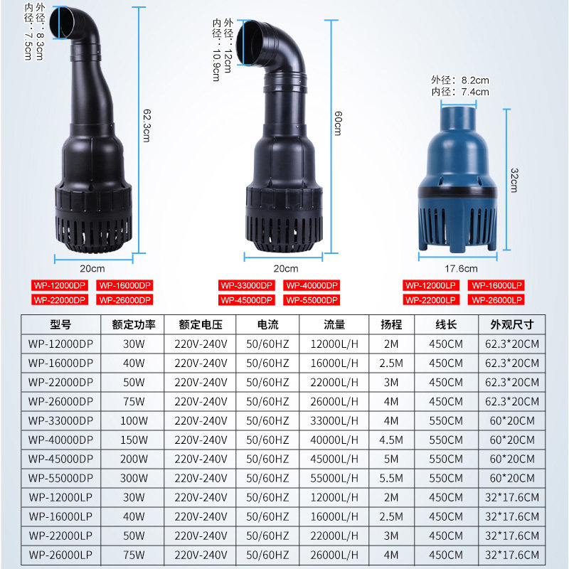 松宝鱼池过滤循环水泵大流量静音潜水泵抽水泵烟斗冲浪泵变频喷泉