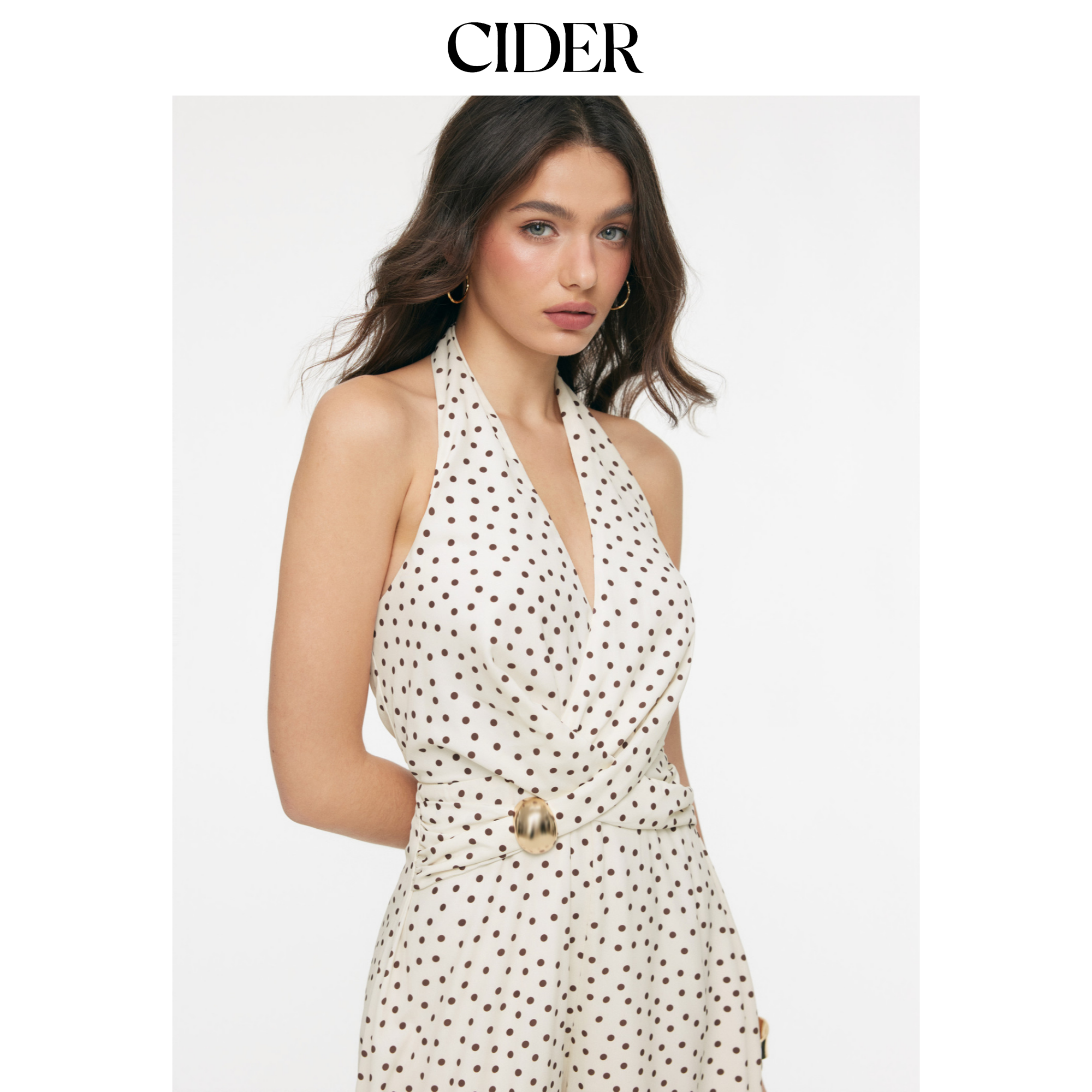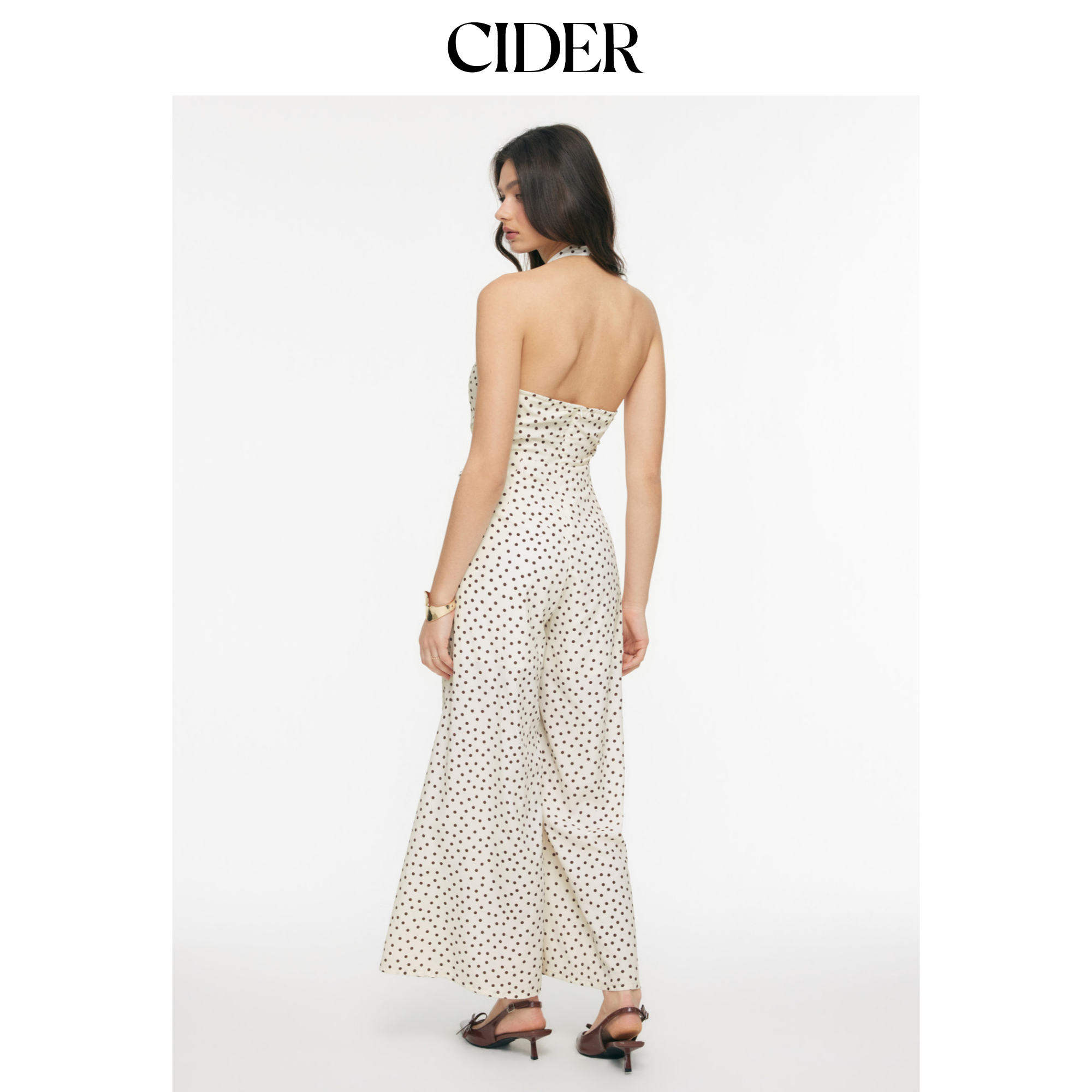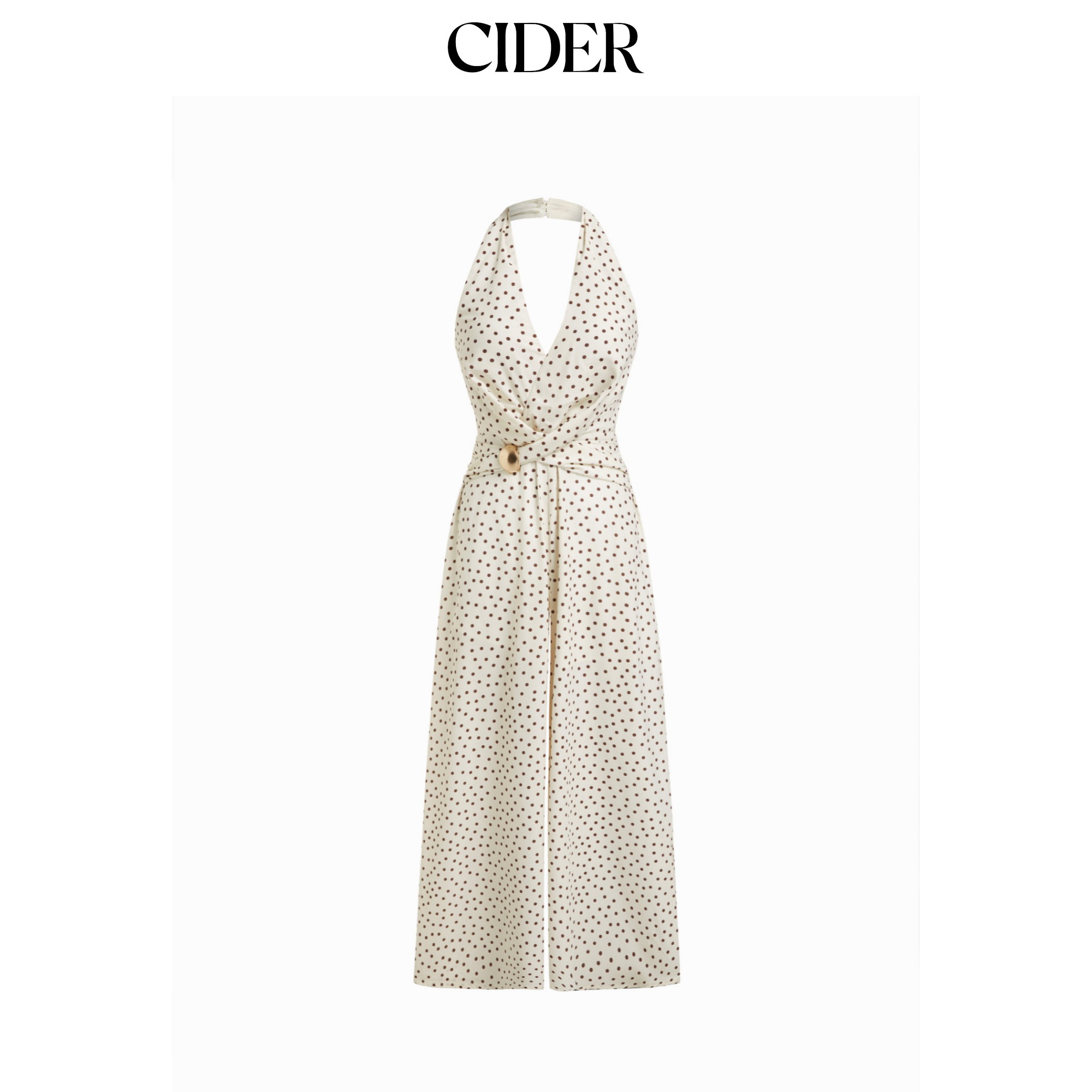 CIDER挂脖波点褶皱金属饰阔腿连体裤115152554