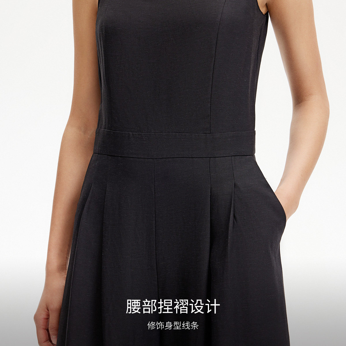 Vero Moda连体裤女2025春新款天丝捏褶亚麻莱赛尔显瘦吊带连体裤