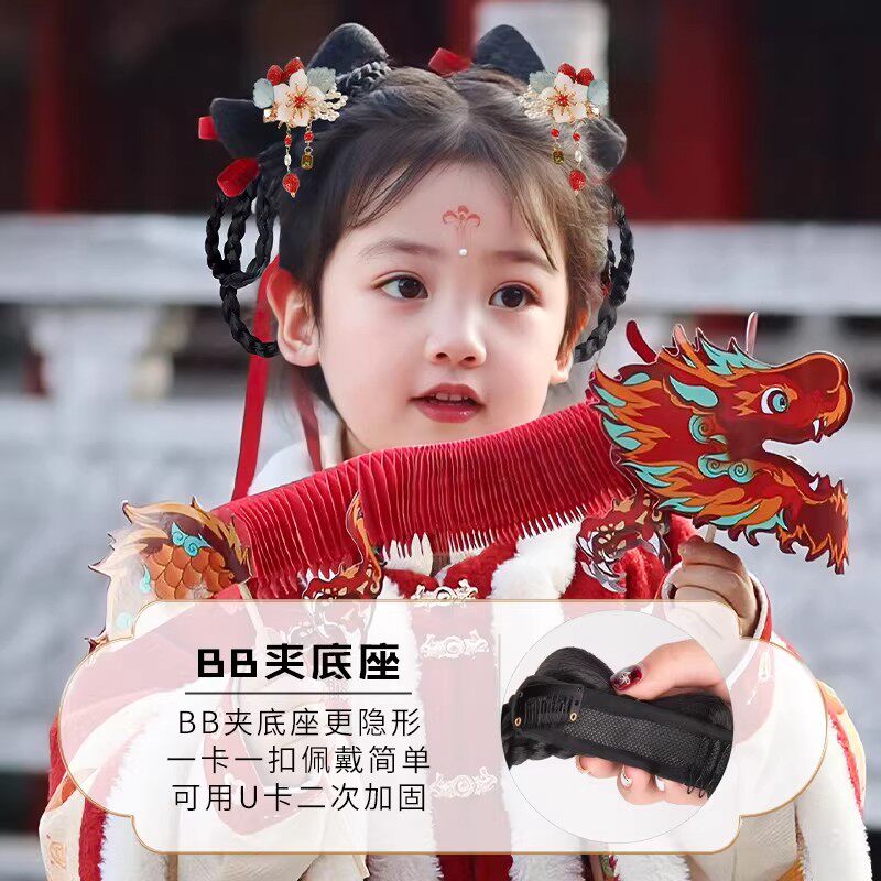 儿童汉服头饰假发发包新年古风发饰中国风一体式造型冬季古装发髻