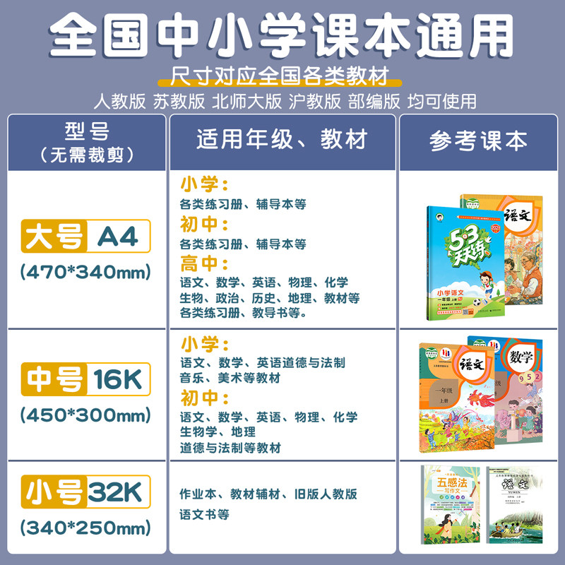 包书皮书套透明书本保护套小学生一二年级书衣16K包书纸三年级四五年级下册全套课本a4书壳初中生专用自粘书