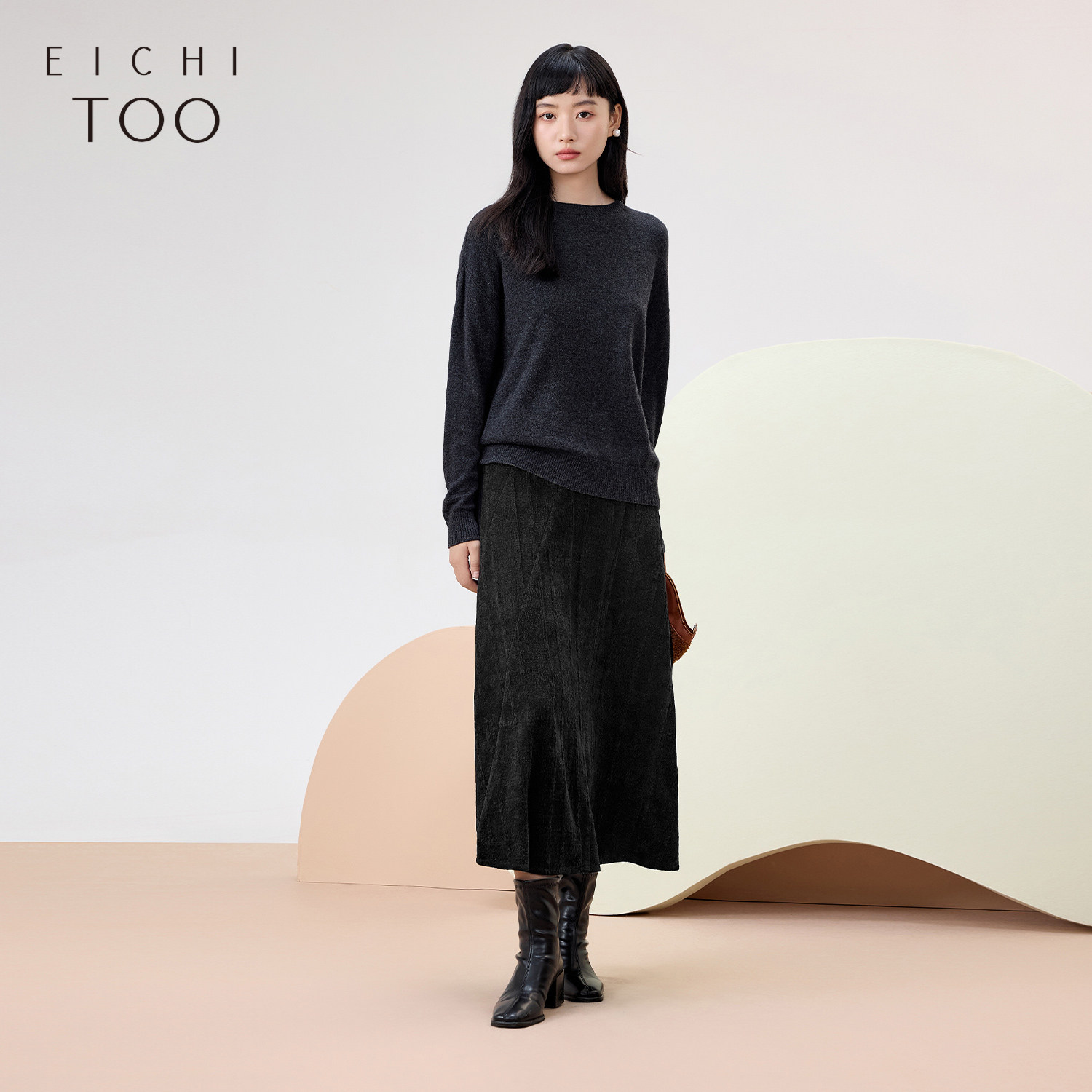 爱居兔简约大气裙子女冬季新款柔顺垂坠半身裙