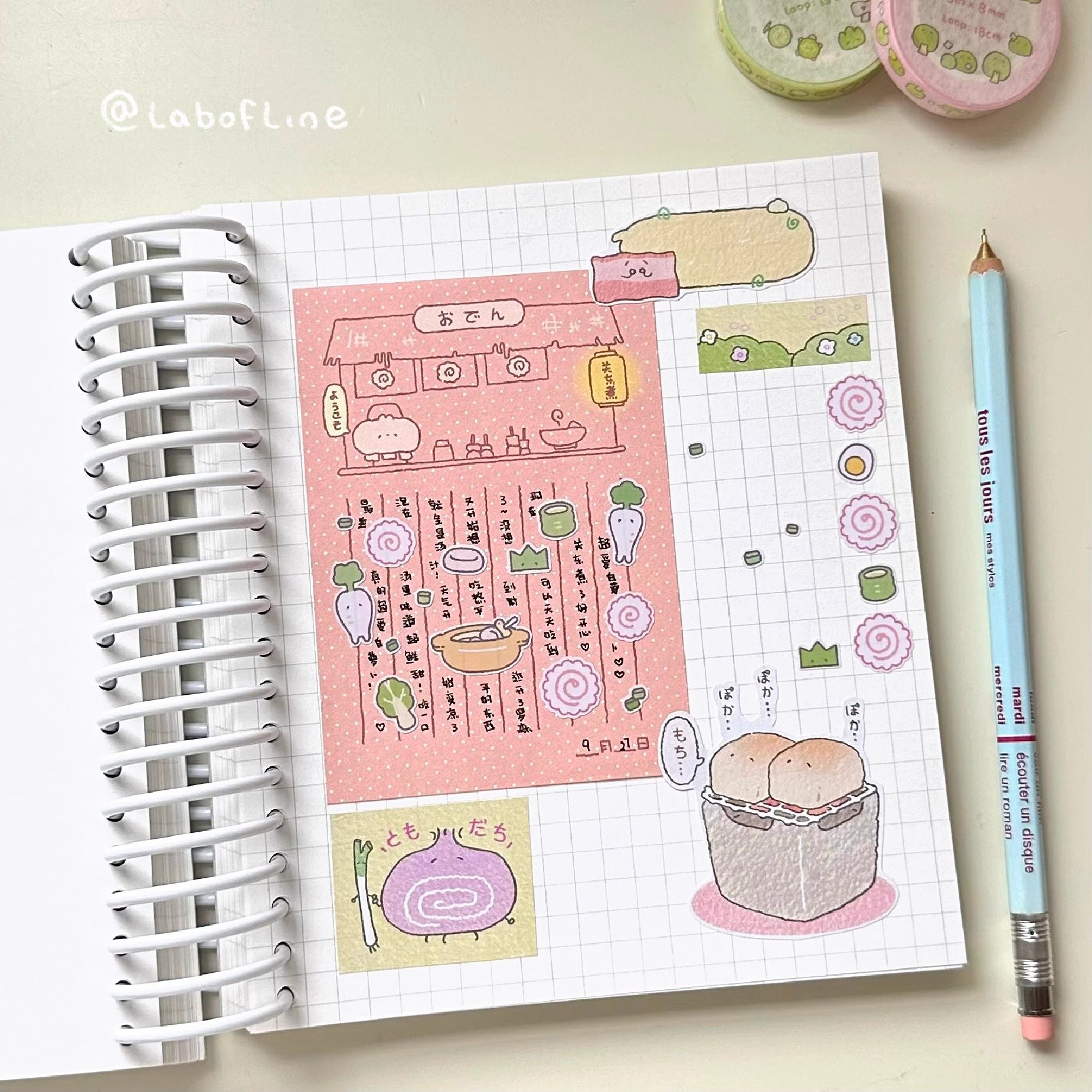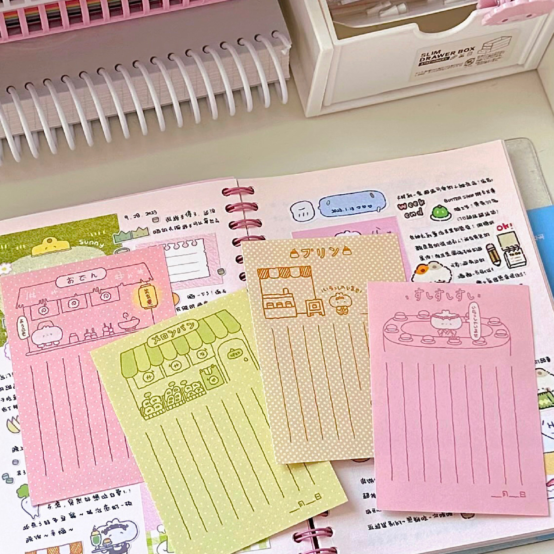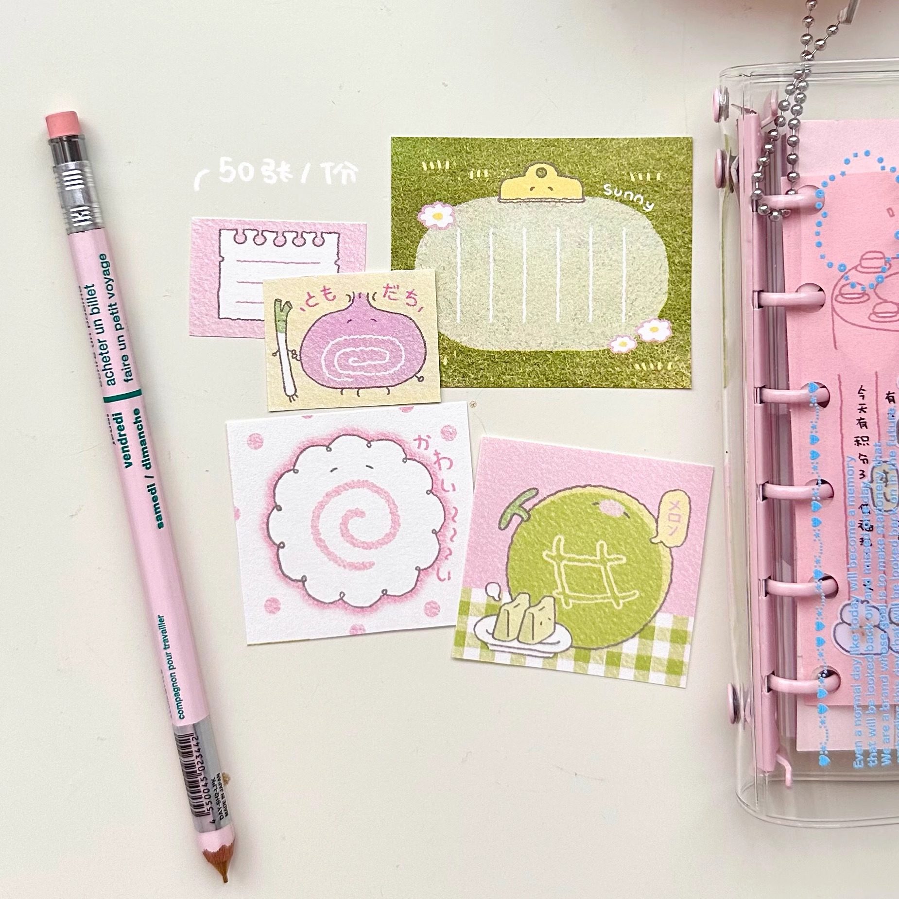 线条研究室新品拼版便签纸分装鱼饼布丁哈密瓜仙贝便签本手账素材